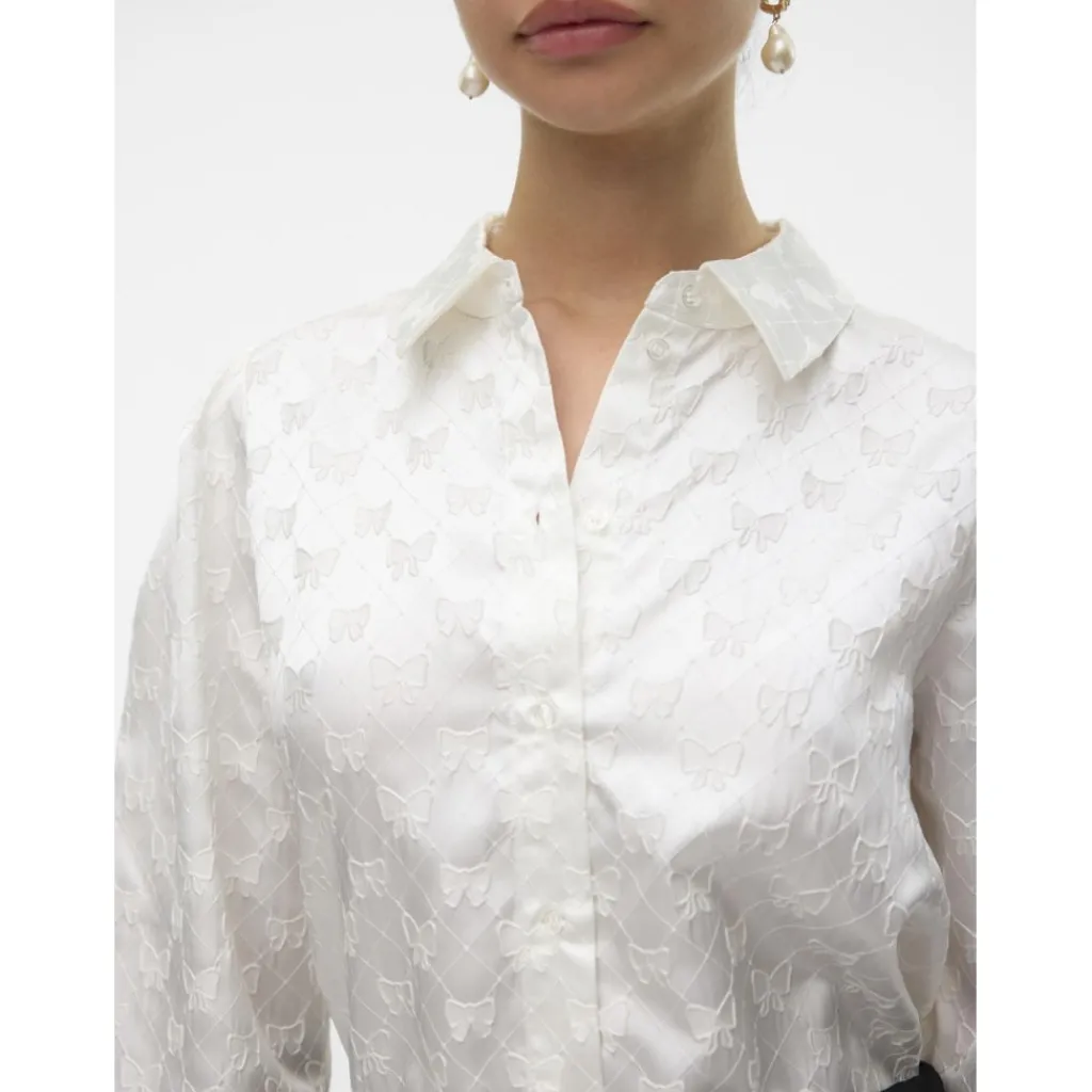 Fin sløjfeskjorte fra Vero Moda. Skjorten er super feminin og kan både dresses op og ned efter anledning. Style den med en nederdel og ballerinaer for et fint look, eller med jeans og sneakers for et casual hverdagslook.