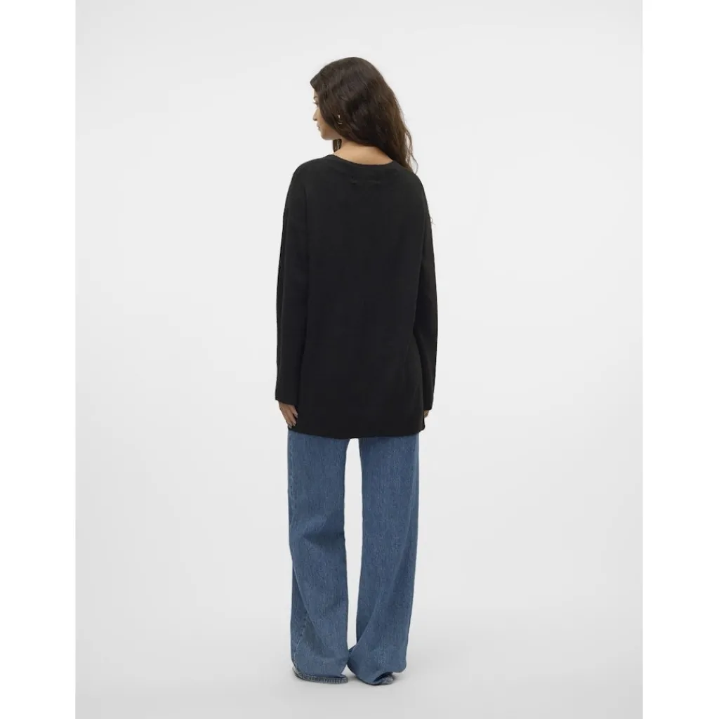 Lang og lækker striktrøje med v-hals fra Vero Moda. Kan både bruges med og uden top under samt jeans for et casual hverdagsoutfit.