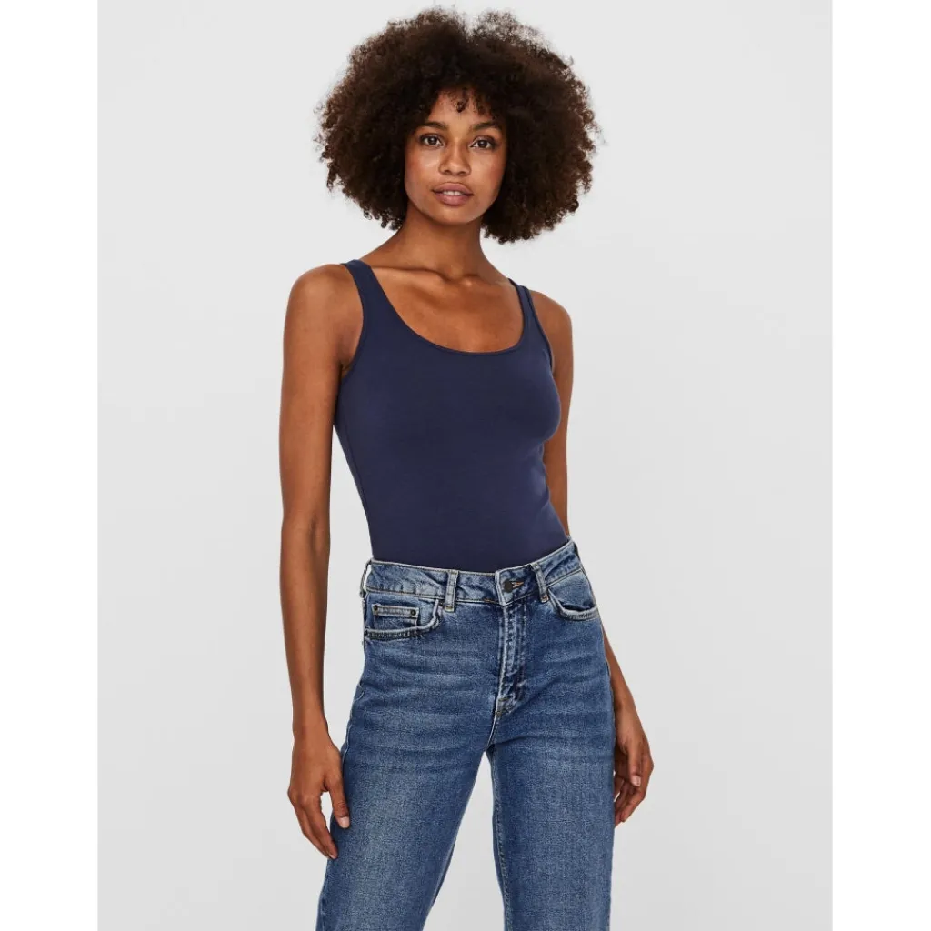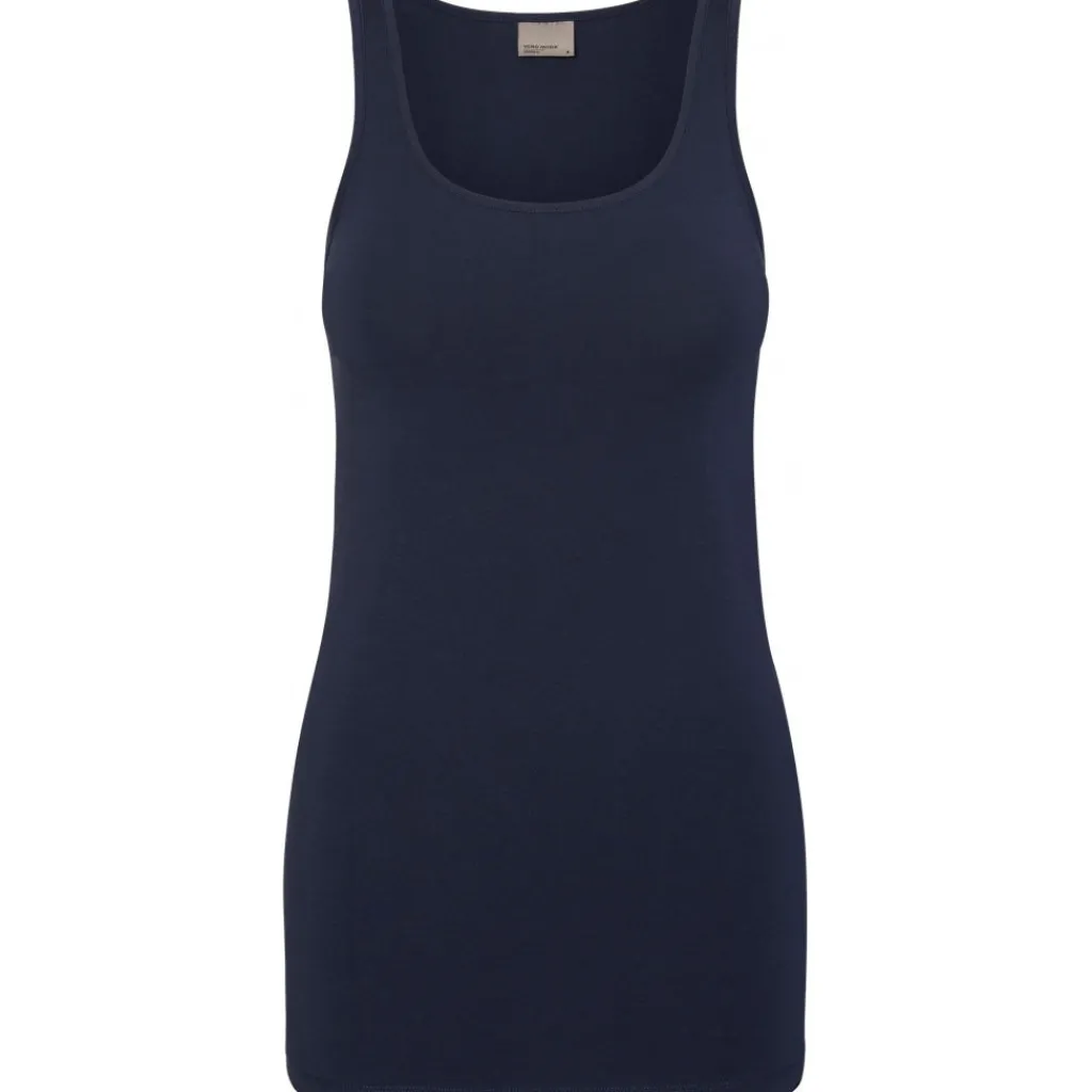 Smart lang tætsiddende top fra Vero Moda. toppen er lavet i organisk bomuld. Modellen er 177cm høj og bruger str. S