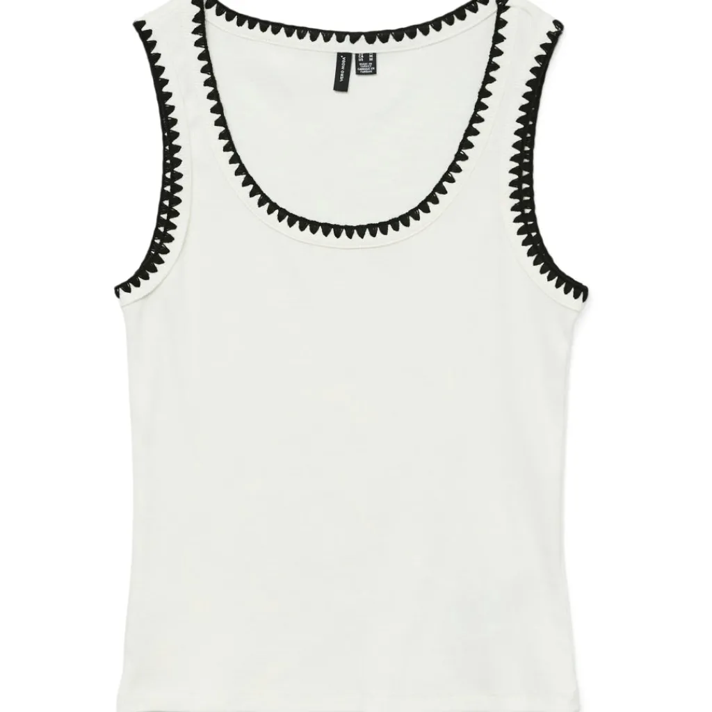Den fineste tank top med rund hals og seje kontrastsyninger. Kan både bruges under en åben skjorte på de køligere dage eller alene på en varm sommerdag. Den kan styles med både jeans og nederdele.