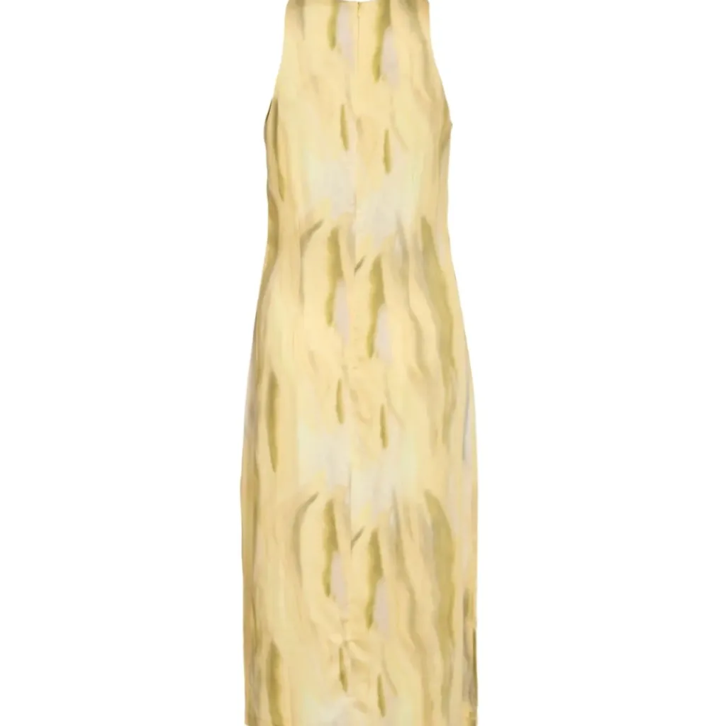 Den smukkeste gule kjole fra Vila. Høj, rund hals og falder flot. Style den til sommerens fest med et par stiletter eller ballerinaer.