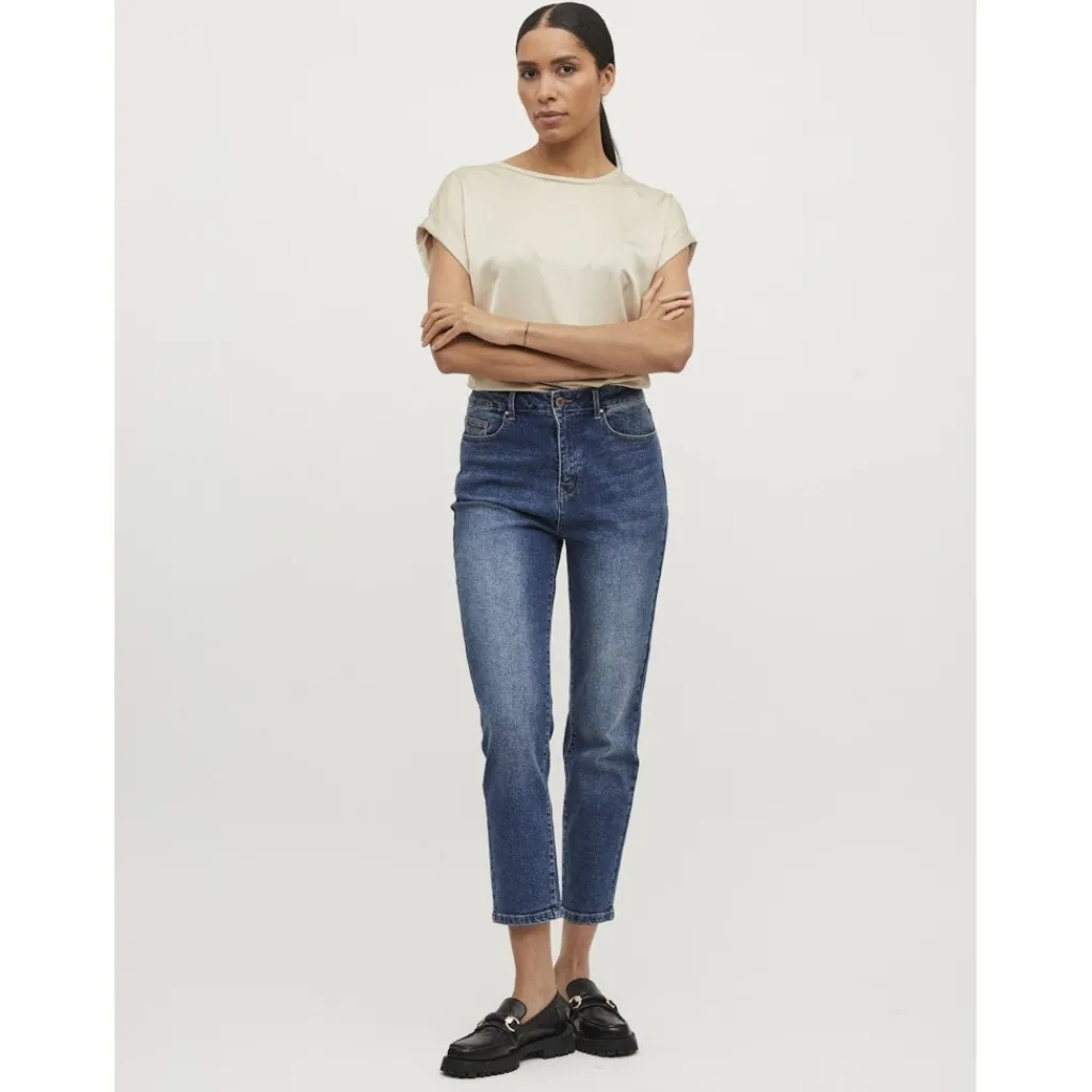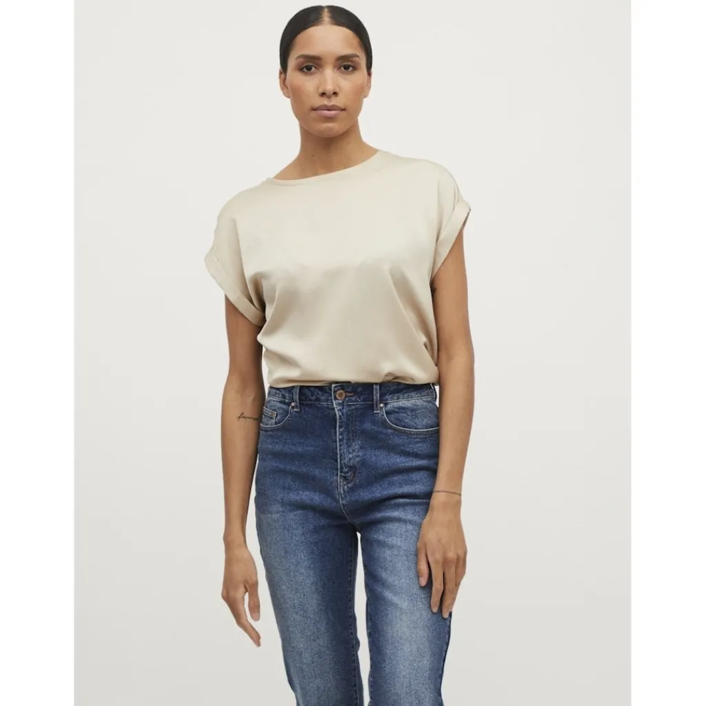 Basic t-shirt fra Vila i en lækker og blød kvalitet. T-shirten er super klassisk og alsidig, og det er en uundværlig style i garderoben efter vores mening. Ikke nok med at den er super fin er den også utrolig komfortabel at have på.