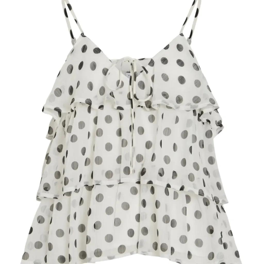 Smukkeste top med flæser. Style til hverdag med et par jeans, og brug den med en nederdel til sommerens fester.