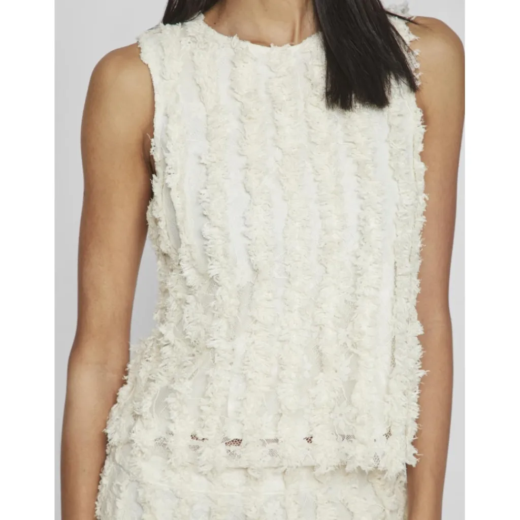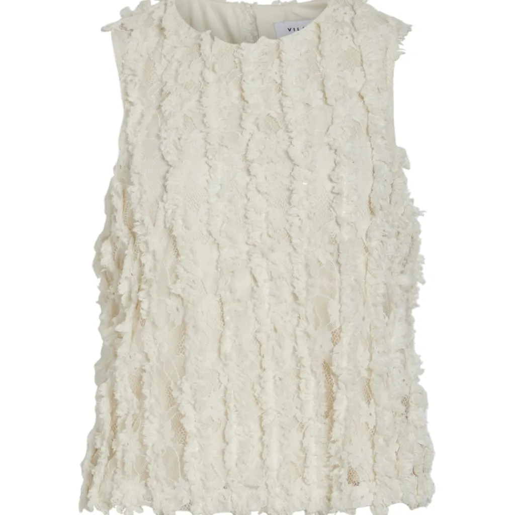 Smart top med blonde og frynser fra Vila. Toppen kan styles med nederdelen fra samme serie.