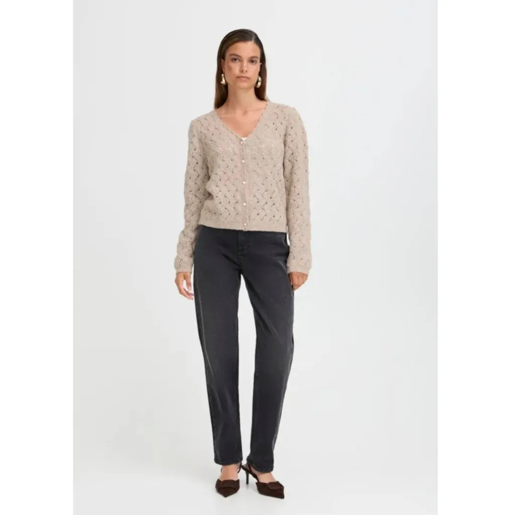 Fin strikket cardigan fra B.Young. Perfekt til henover en basis t-shirt eller top.