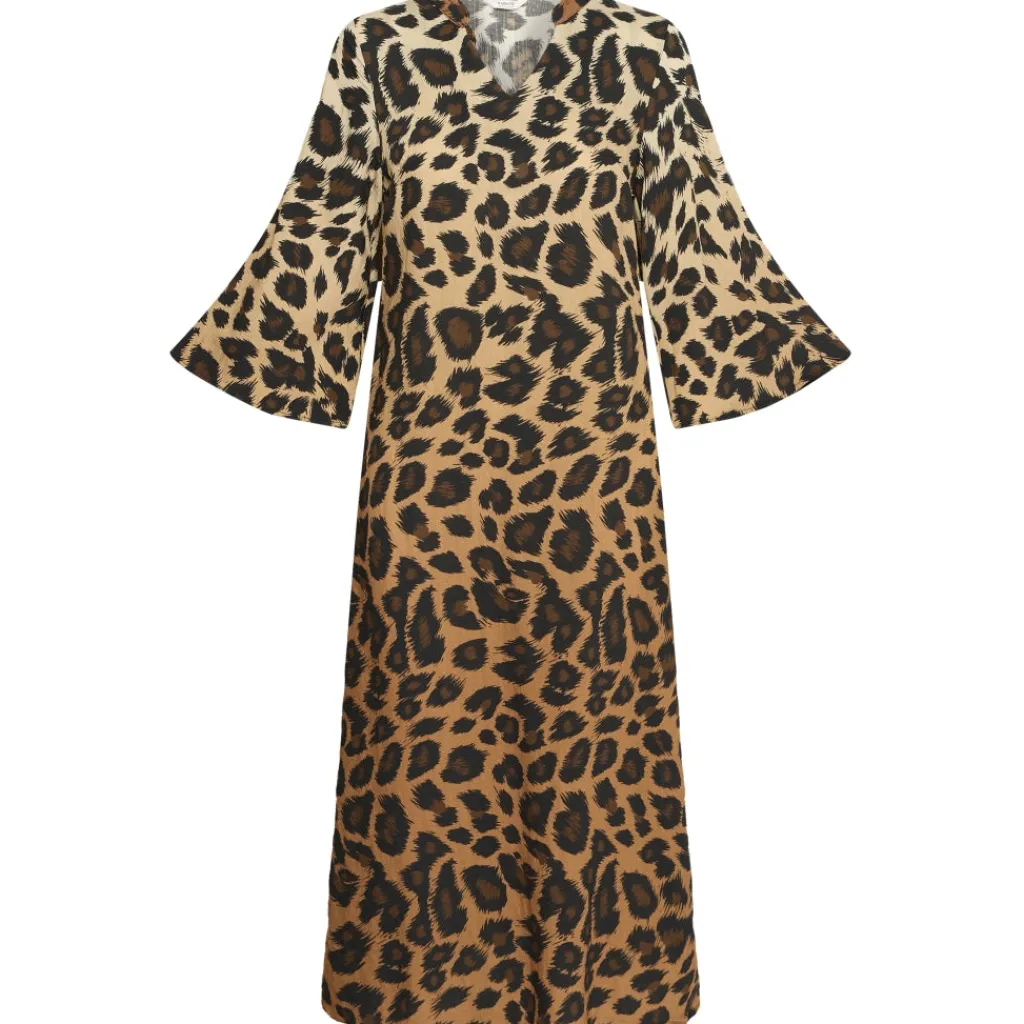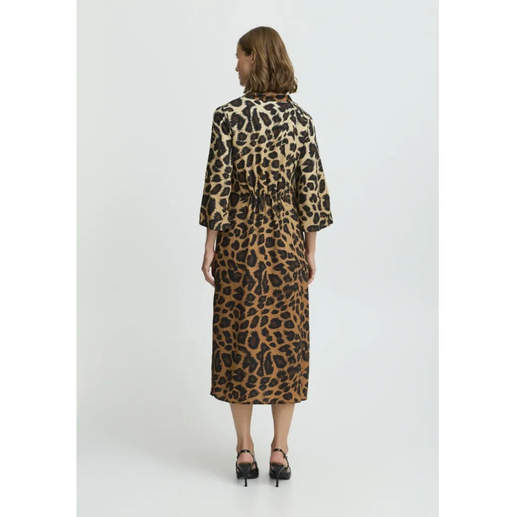 Sej leopardkjole fra b.young med elastik på ryggen der giver en figursyet look.