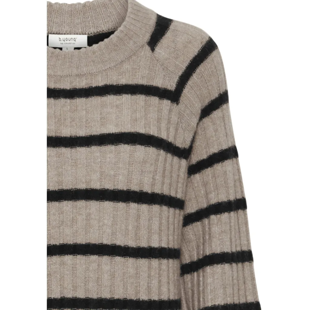 Smuk stribet strikkjole fra b.young. Den afslappede og behagelige pasform, gør den ideal til hverdag stylet med et par høje støvler.
