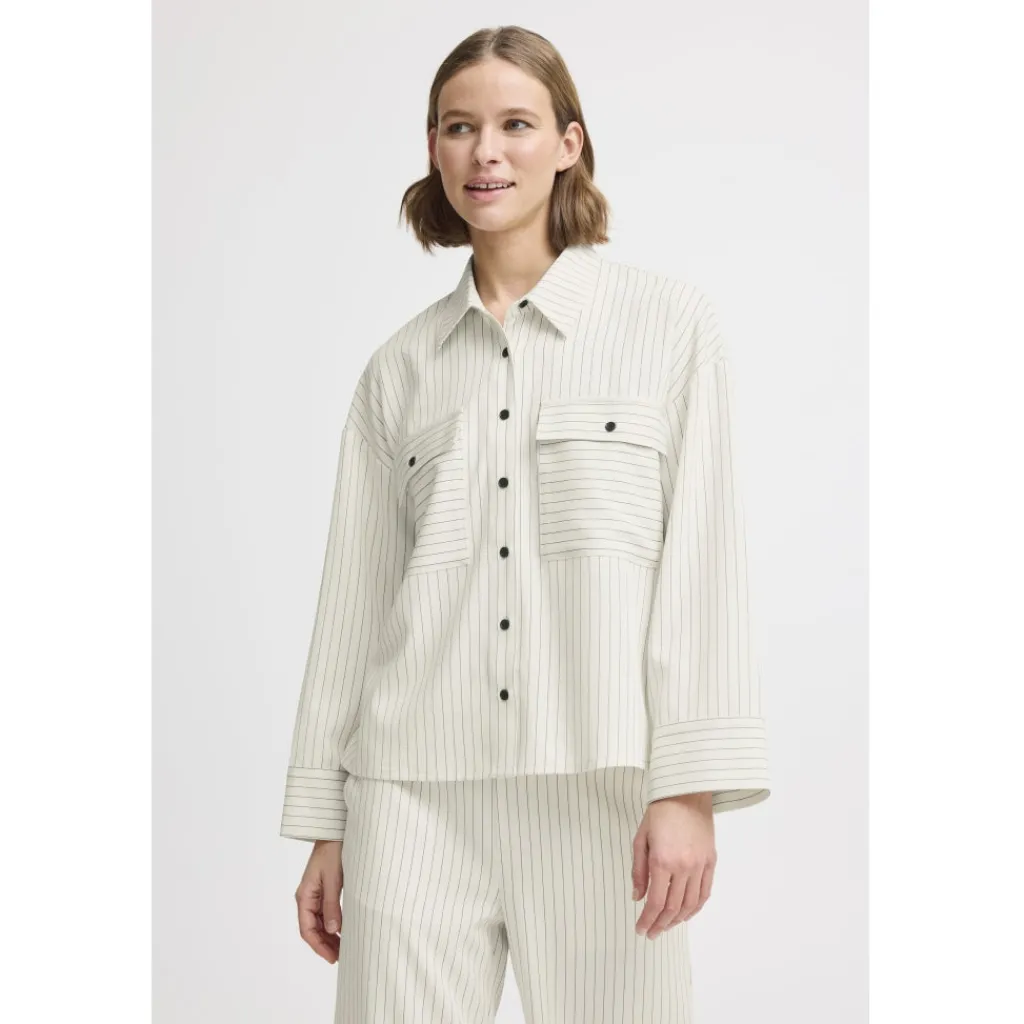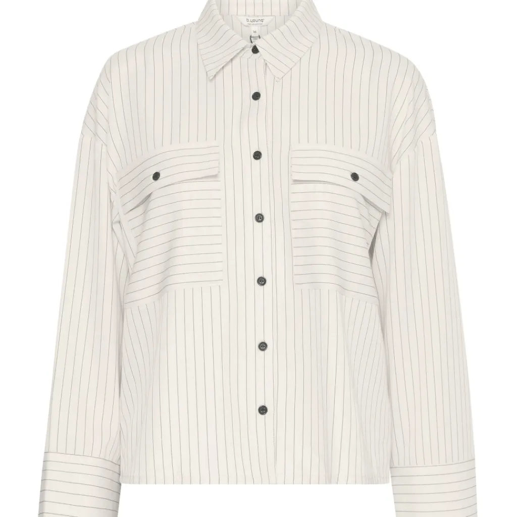 Sejeste stribede skjorte fra b.young. Skjorten er gennemknappet og har brystlommer. Super cool og kan matches med bukserne fra samme serie for et komplet, sejt look.