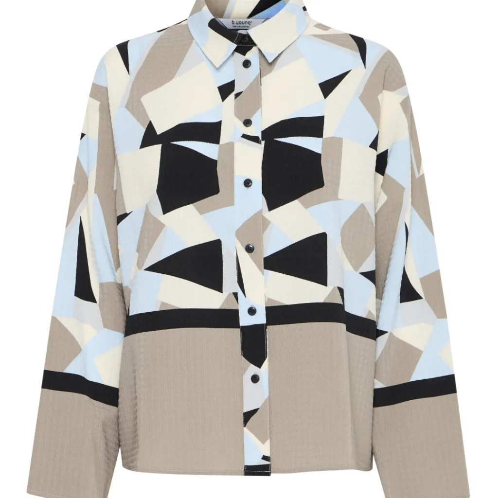 Trendy skjorte med blockfarver fra b.young. Skjorten har et smukt, unikt print, og kan styles med bukserne fra samme serie.