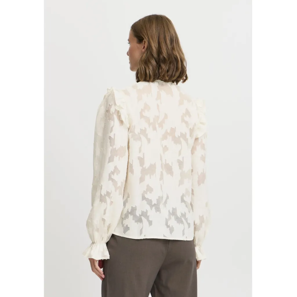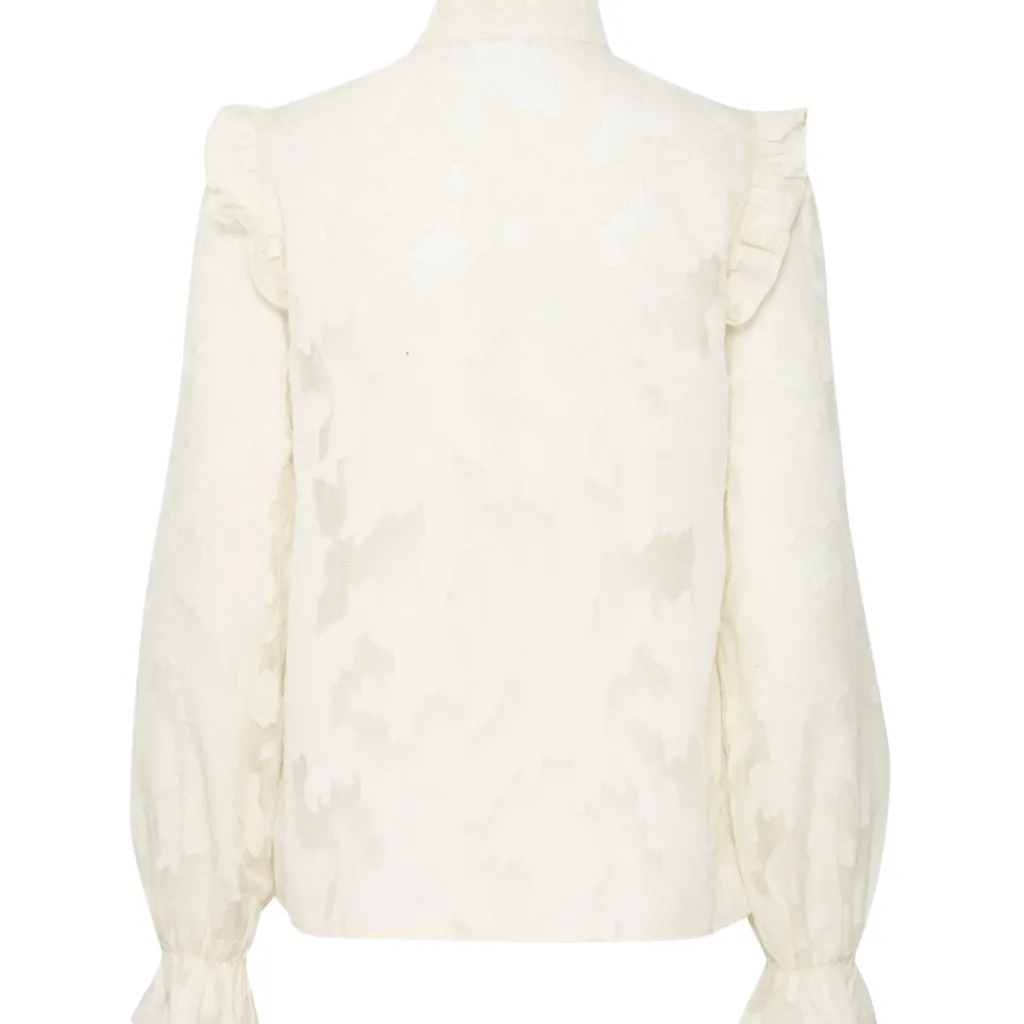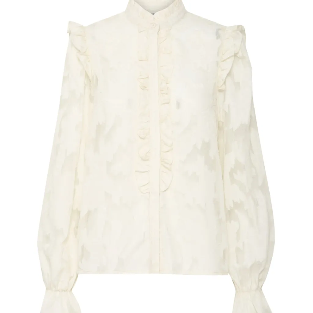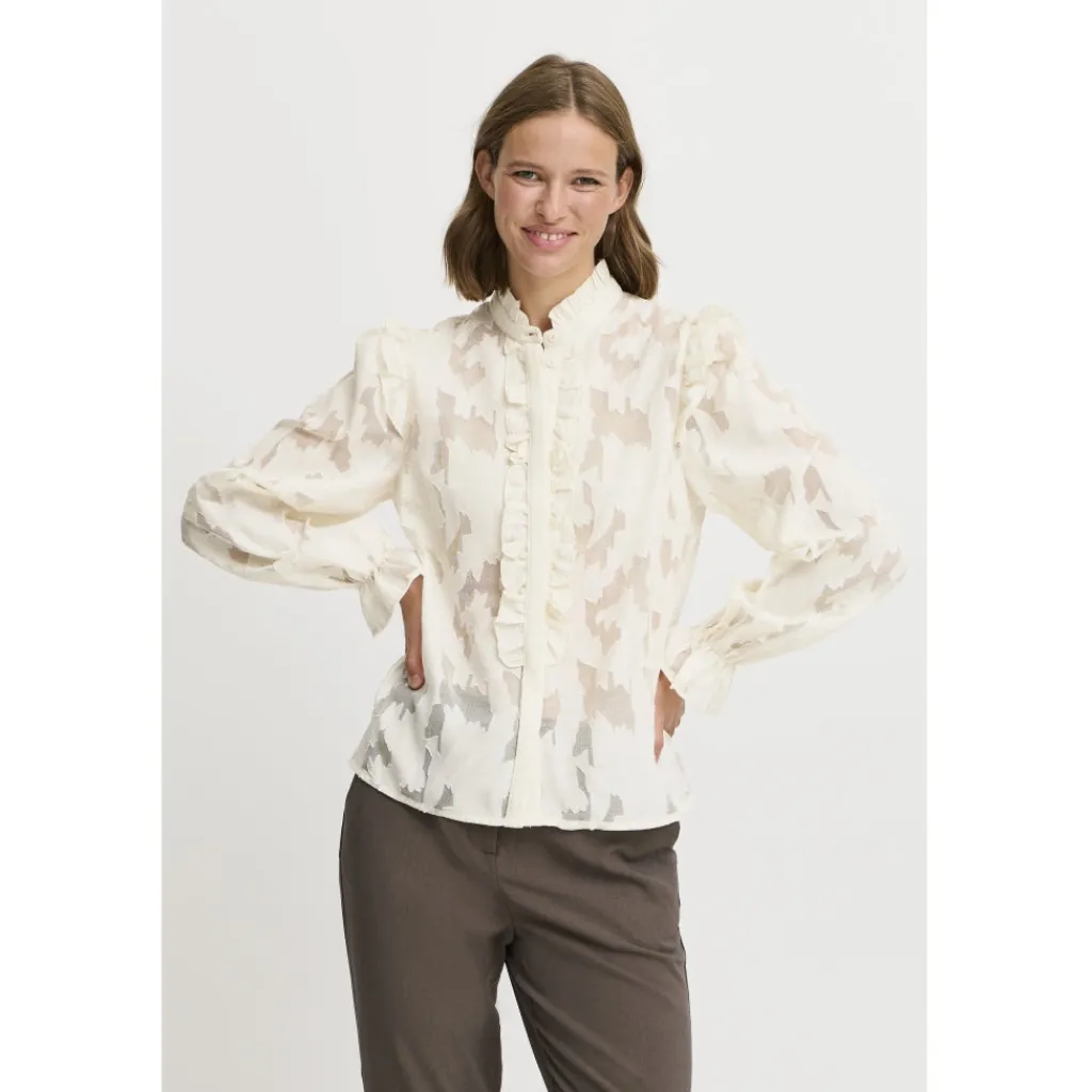 Smukkeste blondeskjorte fra b.young. Skjorten er let gennemsigtig og har de fineste flæser. For et finere look, style den med en maxi- eller midi nederdel og et par slingback stiletter.