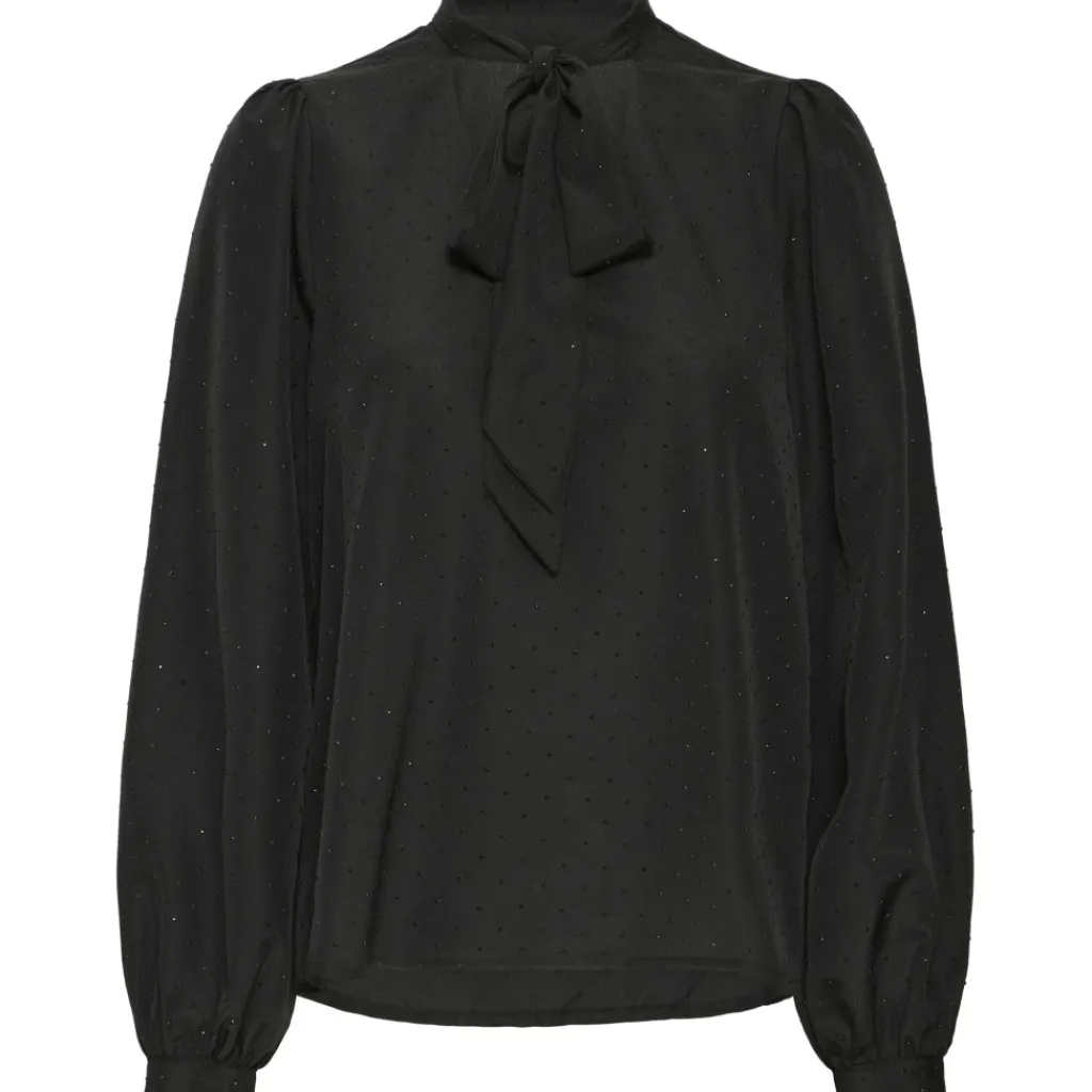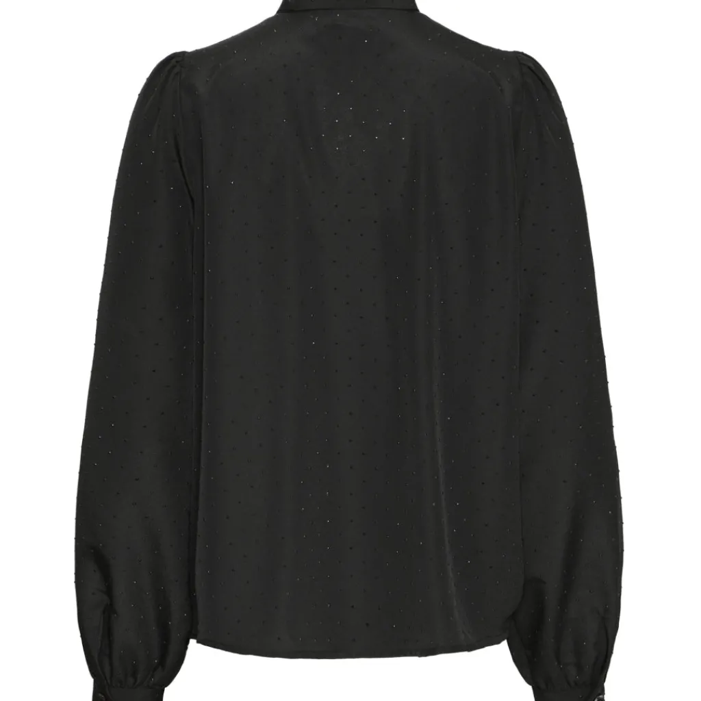 Smuk og feminin skjorte fra B.Young med prikker. Skjorten har en sløjfedetalje ved krave og let, puffede ærmer med knap-lukning ved ærmekanten. Den kan styles med et par klassiske habbit bukser og en lille hæl for et sofistikeret look.