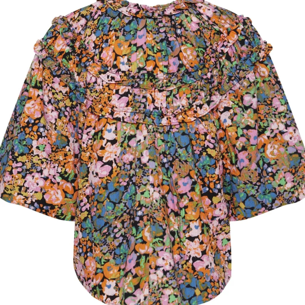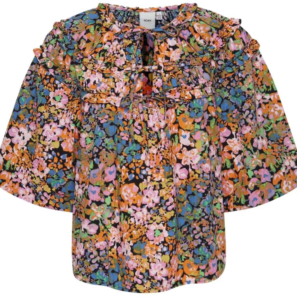 Fin bluse fra ICHI med skønne flæse detaljer og store pufærmer. Blusen kan styles til et par jeans eller en nederdel.