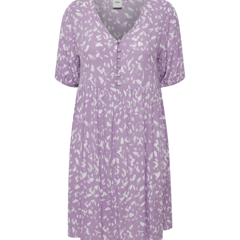 Flot kjole fra ICHI med v-udskæring og snit ved taljen, som giver en flot pasform.