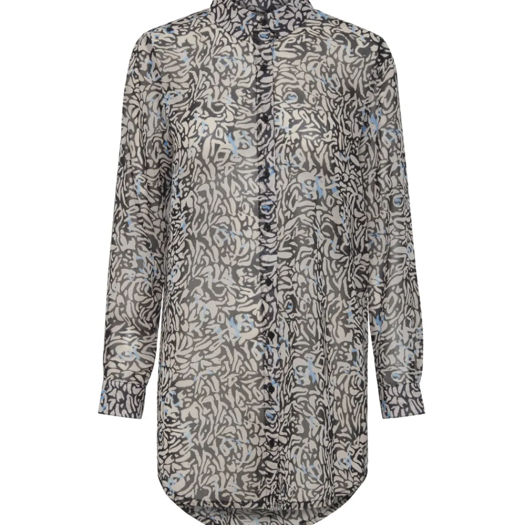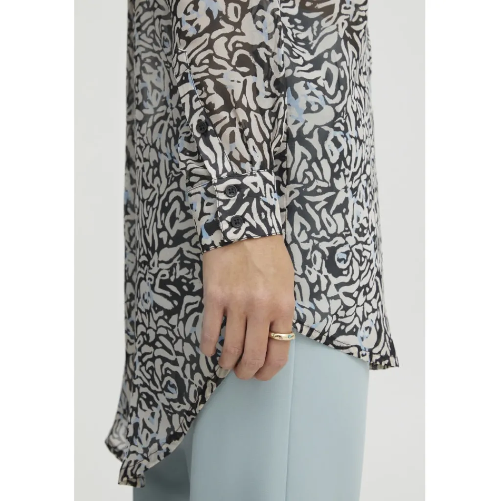 Super lækker skjorte fra ICHI i en gennemsigtig og let kvalitet. Skjorten er lidt længere bagpå og kan styles til et par jeans og støvler.
