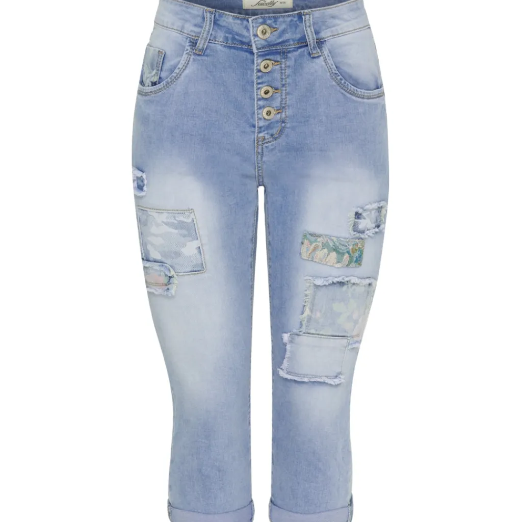Smarte shorts med dekorative lapper og knapper som lukning.