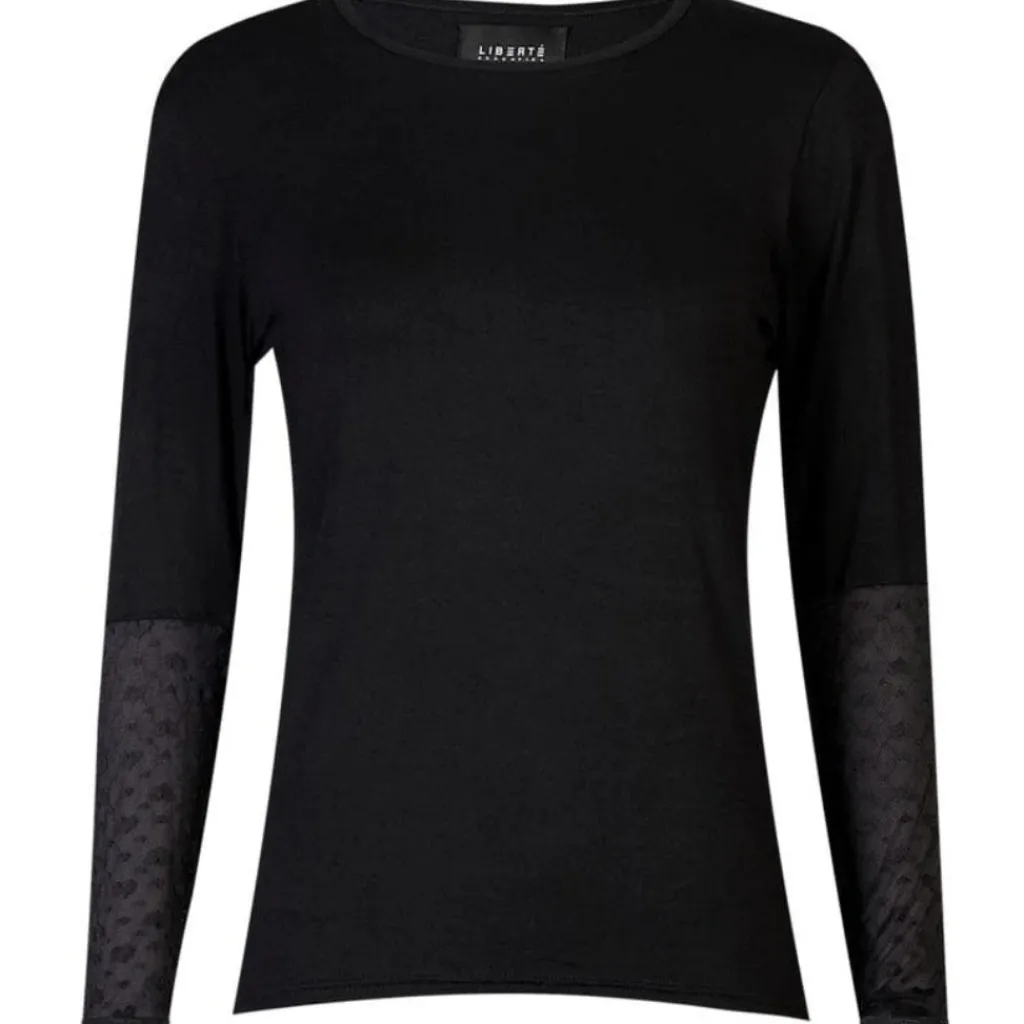 God basis bluse fra Liberté med en sød detalje med blonder ved ærmerne.