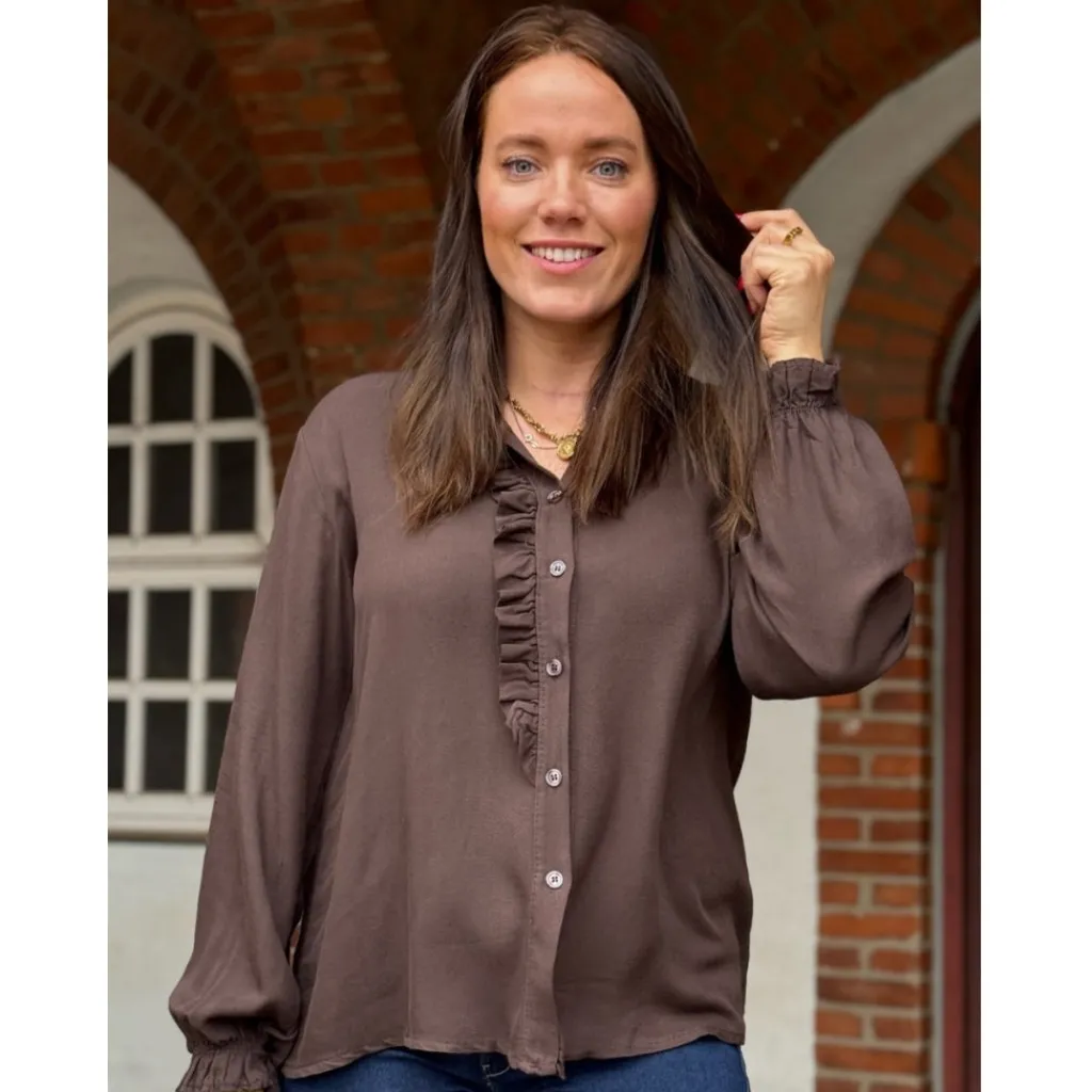 Super fin skjorte fra Lululia med flæsedetaljer. Den har lange ærmer med flæsedetalje, samt gennemgående knapper front. Skjorten kan styles med et par jeans og en lille hæl for et sofistikeret look.