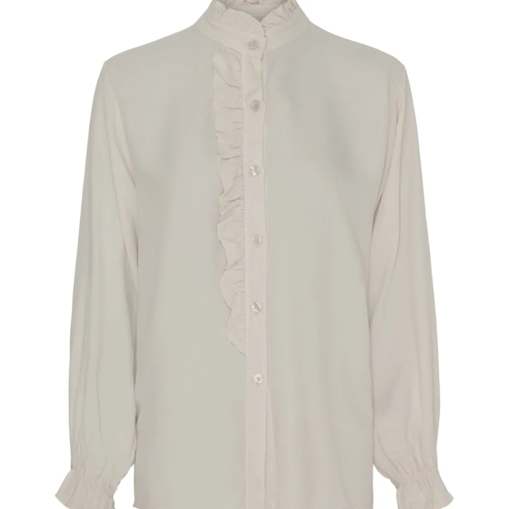 Super fin skjorte fra Lululia med flæsedetaljer. Den har lange ærmer med flæsedetalje, samt gennemgående knapper front. Skjorten kan styles med et par jeans og en lille hæl for et sofistikeret look.