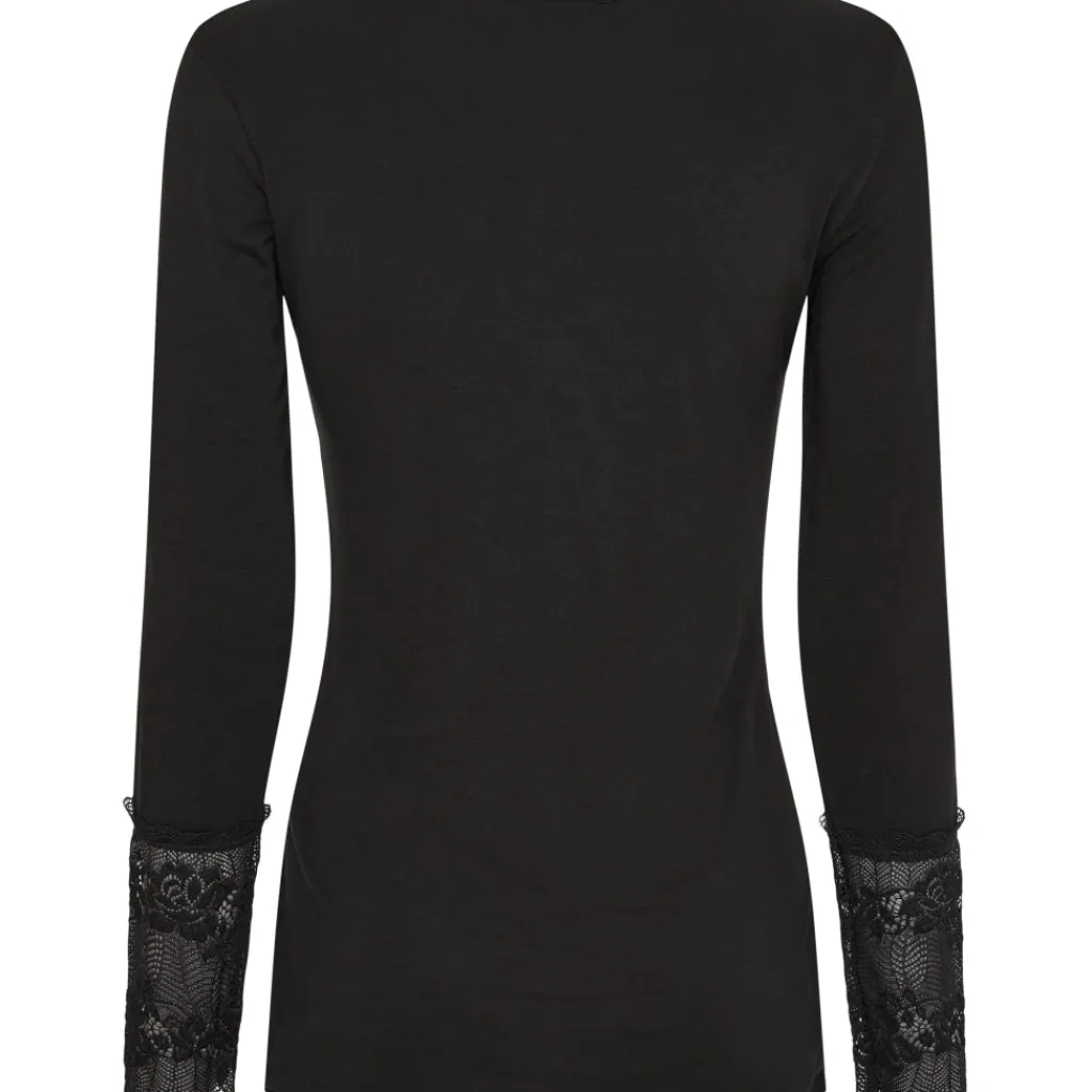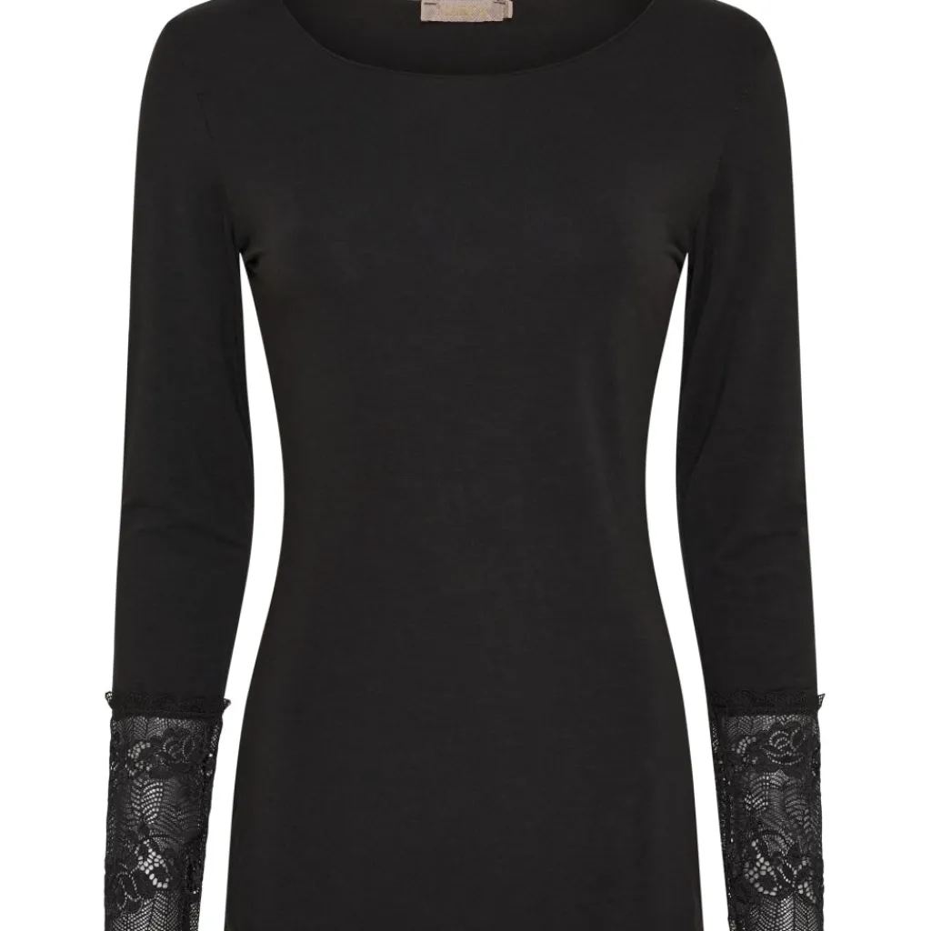 Smuk basis bluse med lange ærmer fra Marta Du Cháteau. Blusen har de fineste blondedetaljer ved ærmet (15 cm. blonde ved ærmet)