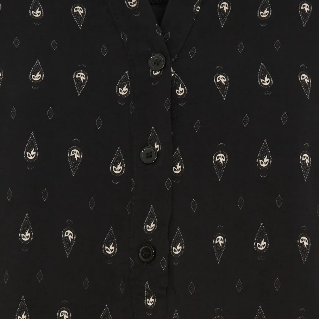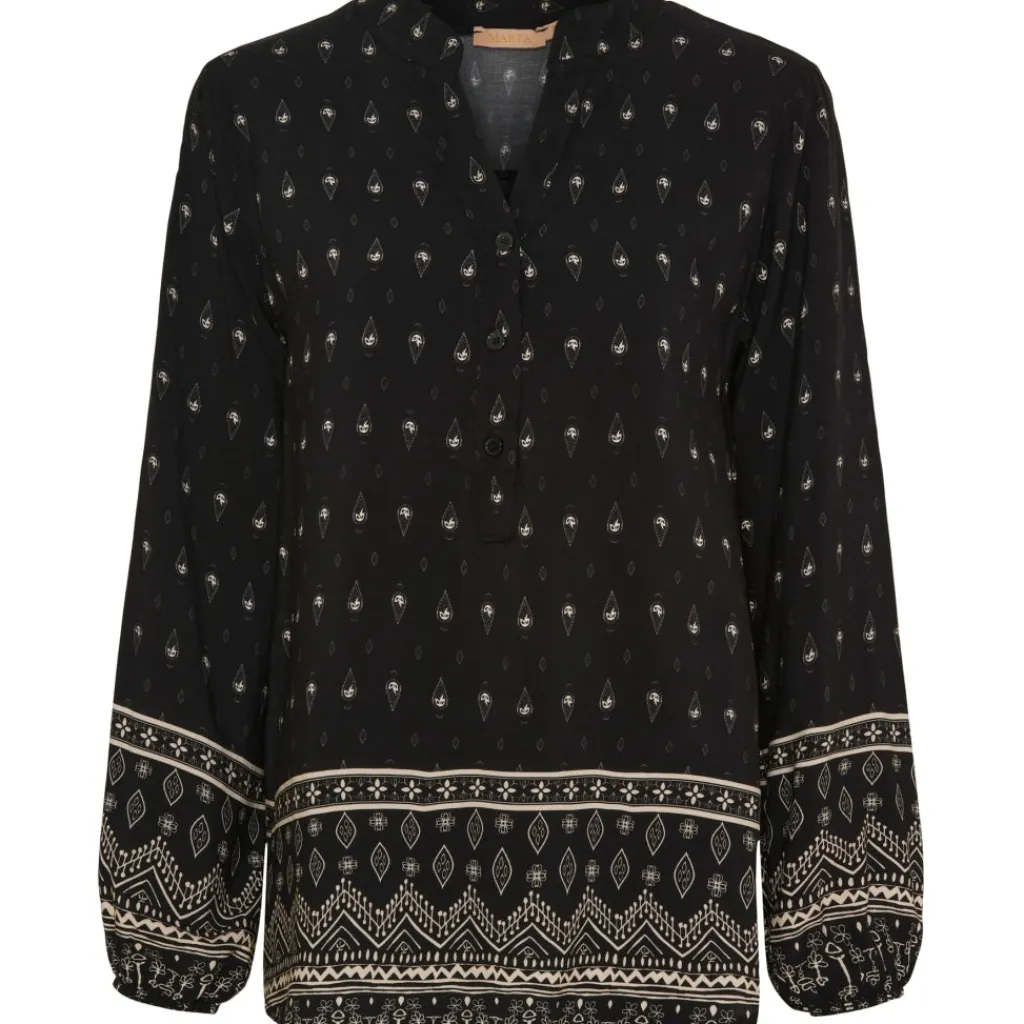 Smuk bluse med feminint mønster fra Marta. Blusen er v-halset og har sofistikerede knapper, og kan både bruges til hverdag og finere anledninger.