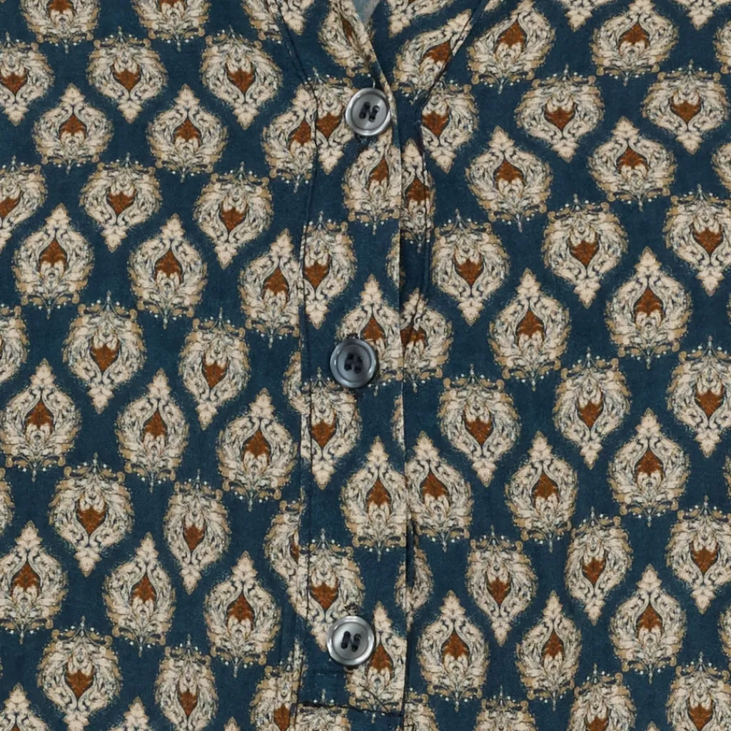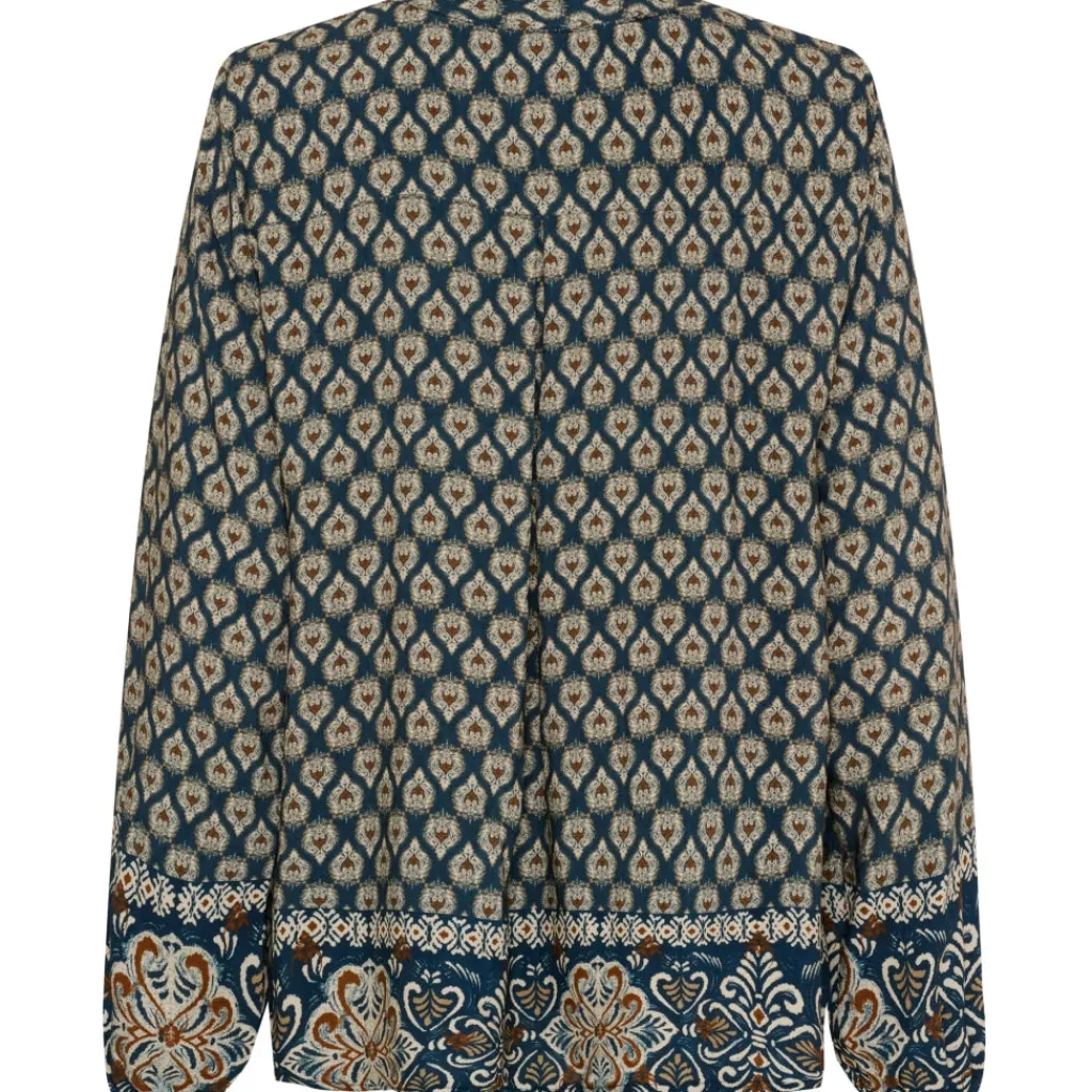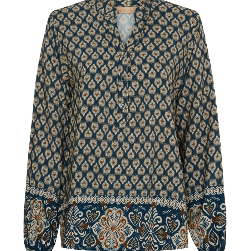 Smuk bluse med feminint mønster fra Marta. Blusen er v-halset og har sofistikerede knapper, og kan både bruges til hverdag og finere anledninger.