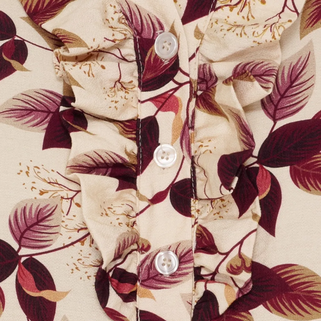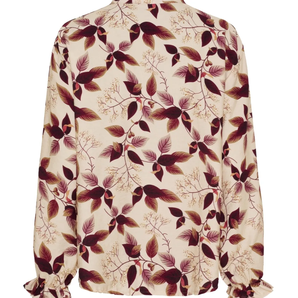Smuk printet skjorte fra Marta Du Cháteau med V-udskæring og flæse detalje. Skjorten har knapper foran og elastik i ærmerne. Ideel både til hverdagsbrug og finere brug.