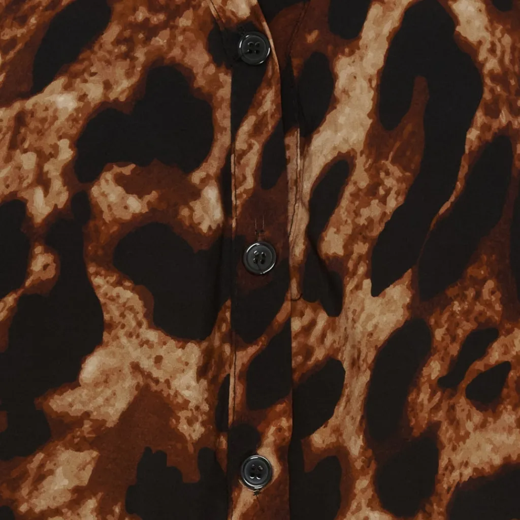 Smuk mønstret bluse fra Marta du Château med smock ved ærmerne. Blusen er v-halset og har knapper langs fronten.