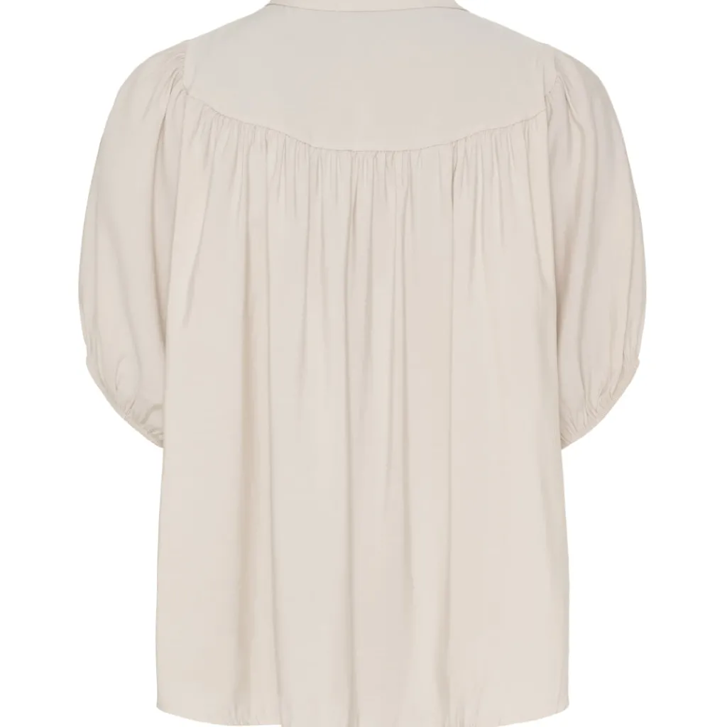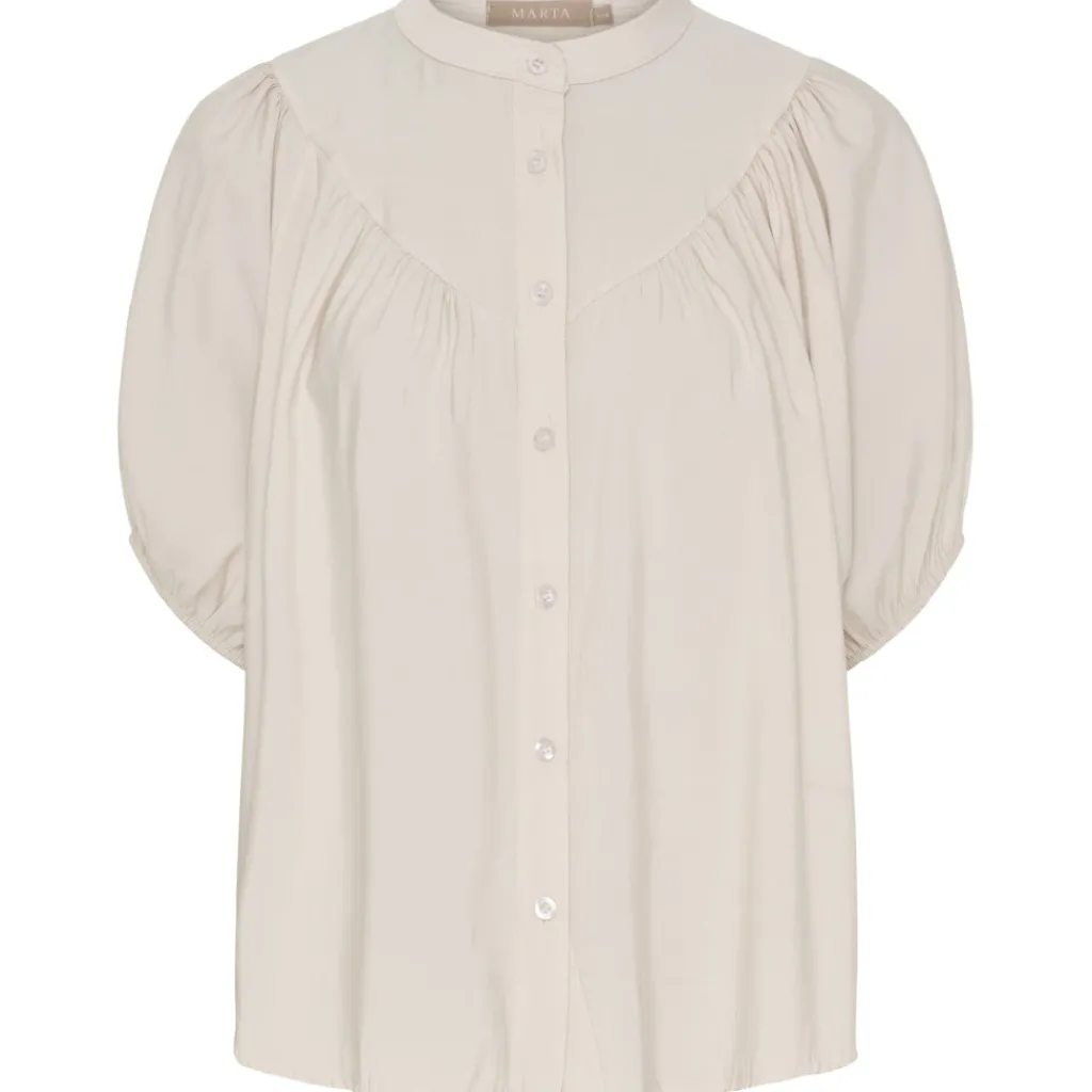 Sød og alsidig Marta Du Château bluse med ballonærmer og rynke detalje. Blusen har kinakrave og gennemgående knapper. Helt perfekt bluse til både hverdag og finere brug.