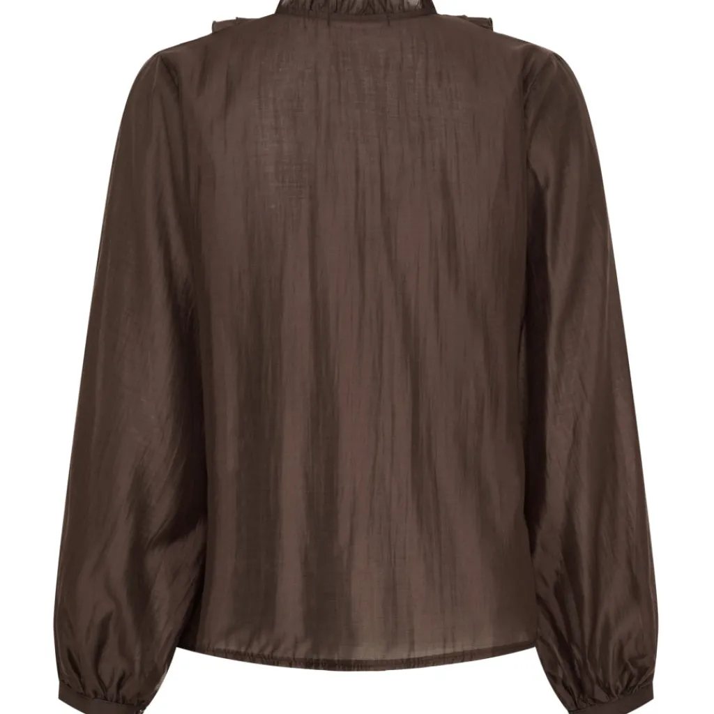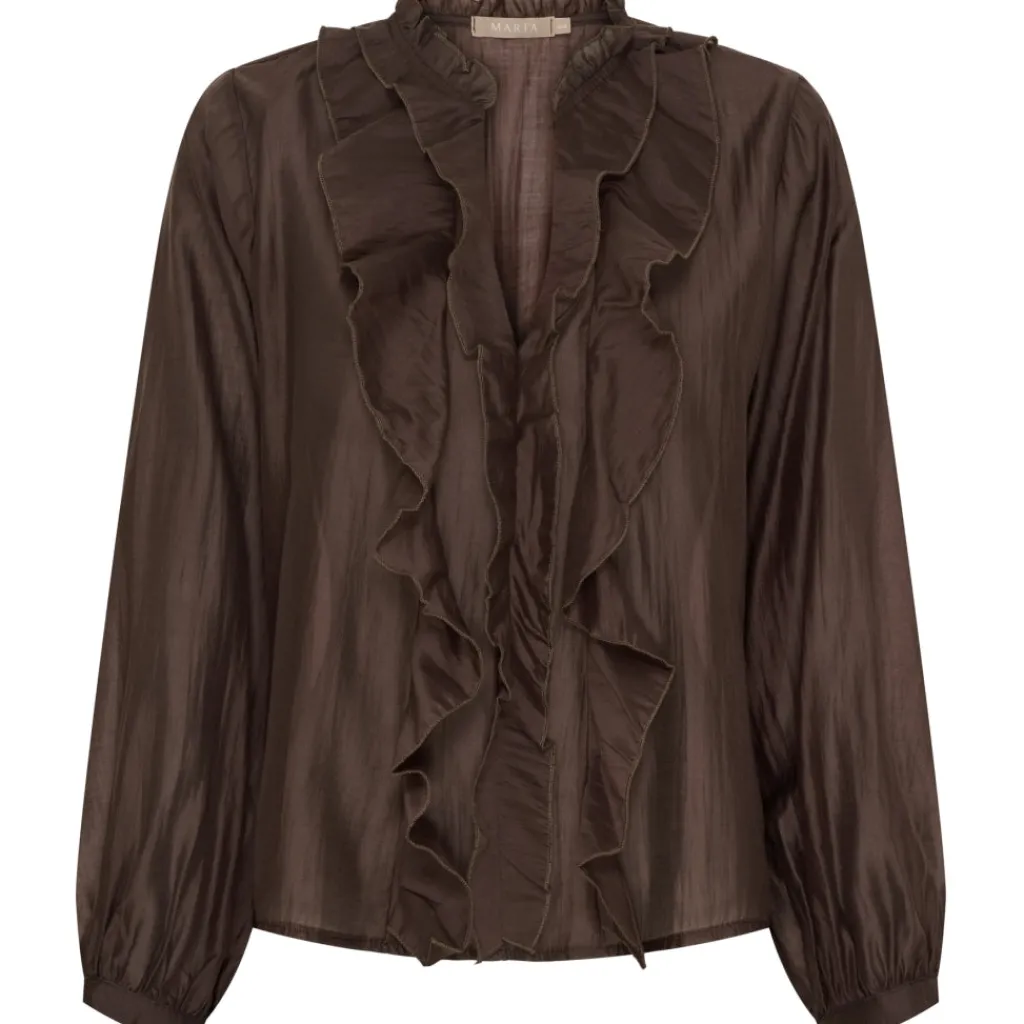 Elegant bluse fra Marta du Château med flæsedetaljer. Blusen har lange ærmer, samt V-udskæring. Den kan styles både med en nederdel og slingback for et finere look eller et par jeans og sneakers for et mere afslappet look.