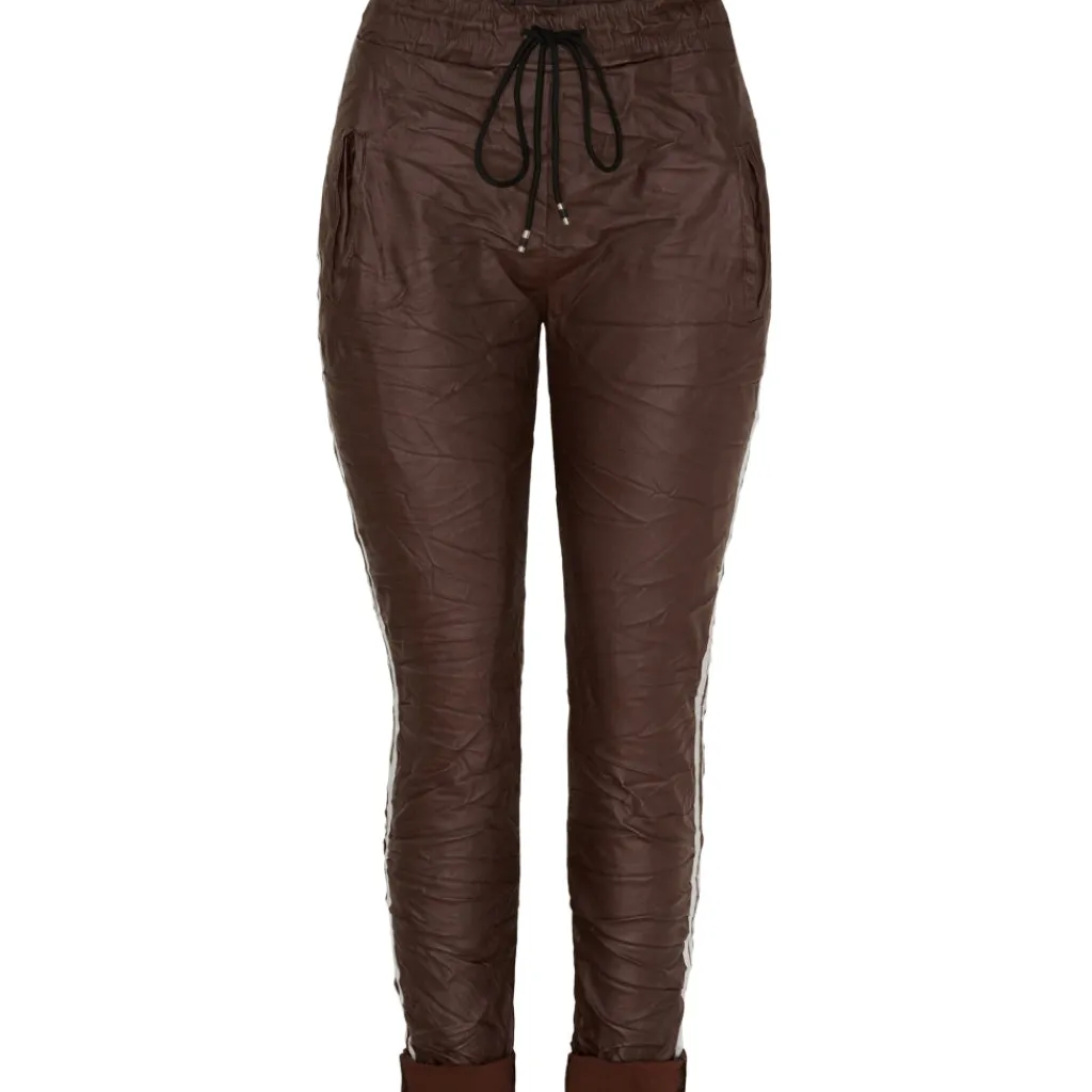 Fede bukser med opsmøg og bindebånd, der giver et stilfuldt look. De er designet med en hvid stribe langs benet, som tilfører et sporty touch. Perfekte til dig der vil udstråle både komfort og kant.
