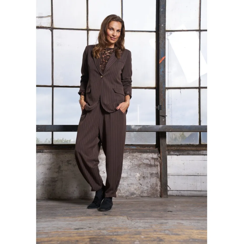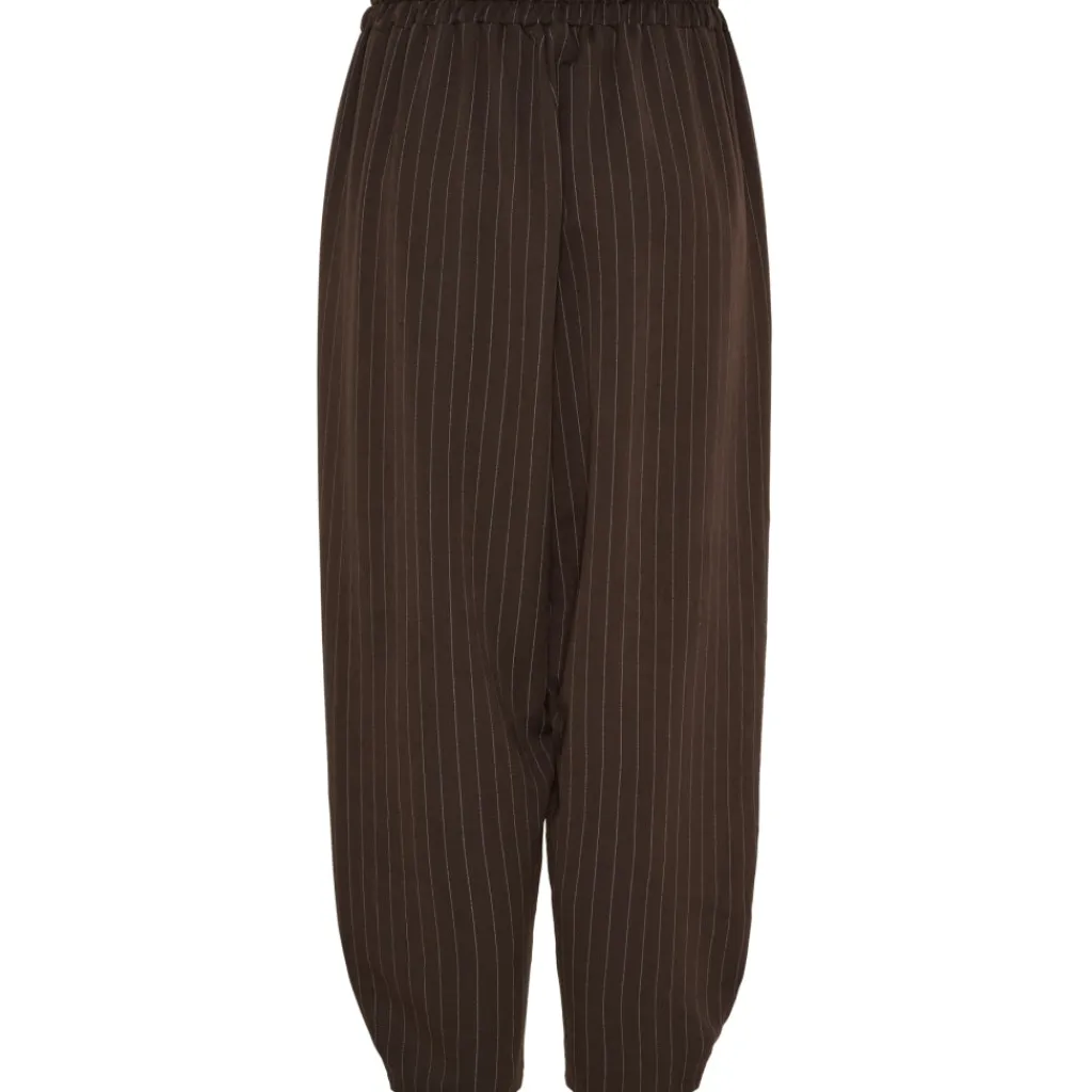 Fine, løse bukser fra Marta du Château i nålestrib. Bukserne har gode lommer og elastik i taljen, som giver komfort. De passer helt perfekt med en oversized skjorte eller striktrøje.