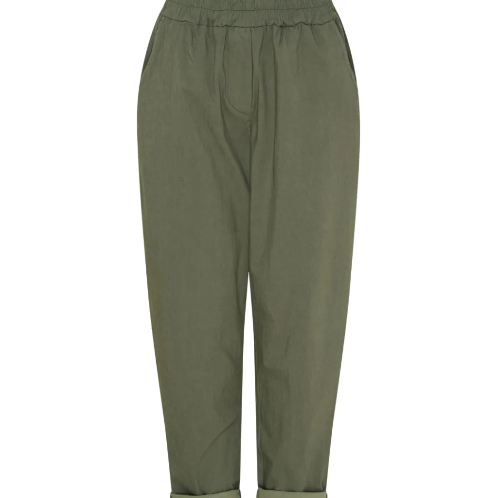 Lækker og luftig buks fra Marta du Château med masser af stræk. Buksen har elastik i taljen, samt lommer både foran og bag. Den har opsmøg nederst, som kan foldes ned, så den bliver fuld længde. Super alsidig buks, som kan styles med både t-shirt, skjorte eller blazer.