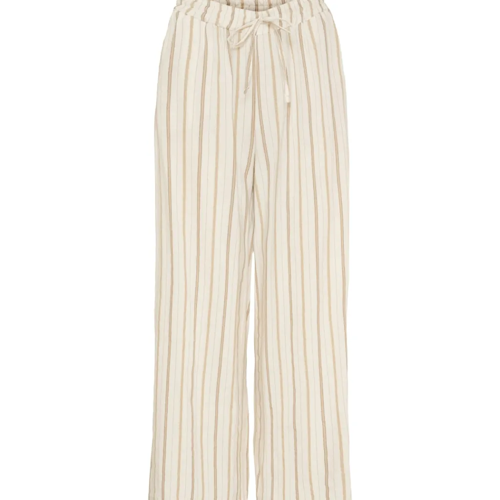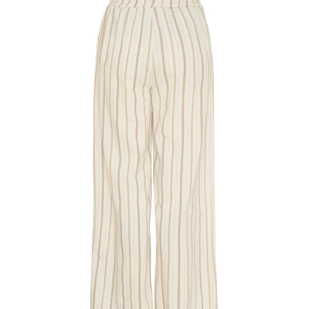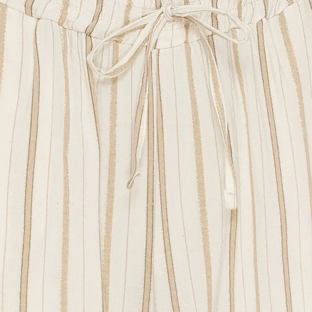 Super fine og komfortable stribet bukser fra Marta du Château med lurex tråd. Buksen er med lige ben og har elastik talje med bindebånd. De er super alsidige og kan både styles med skjorter og bluser. Den styles med toppen i samme serie.