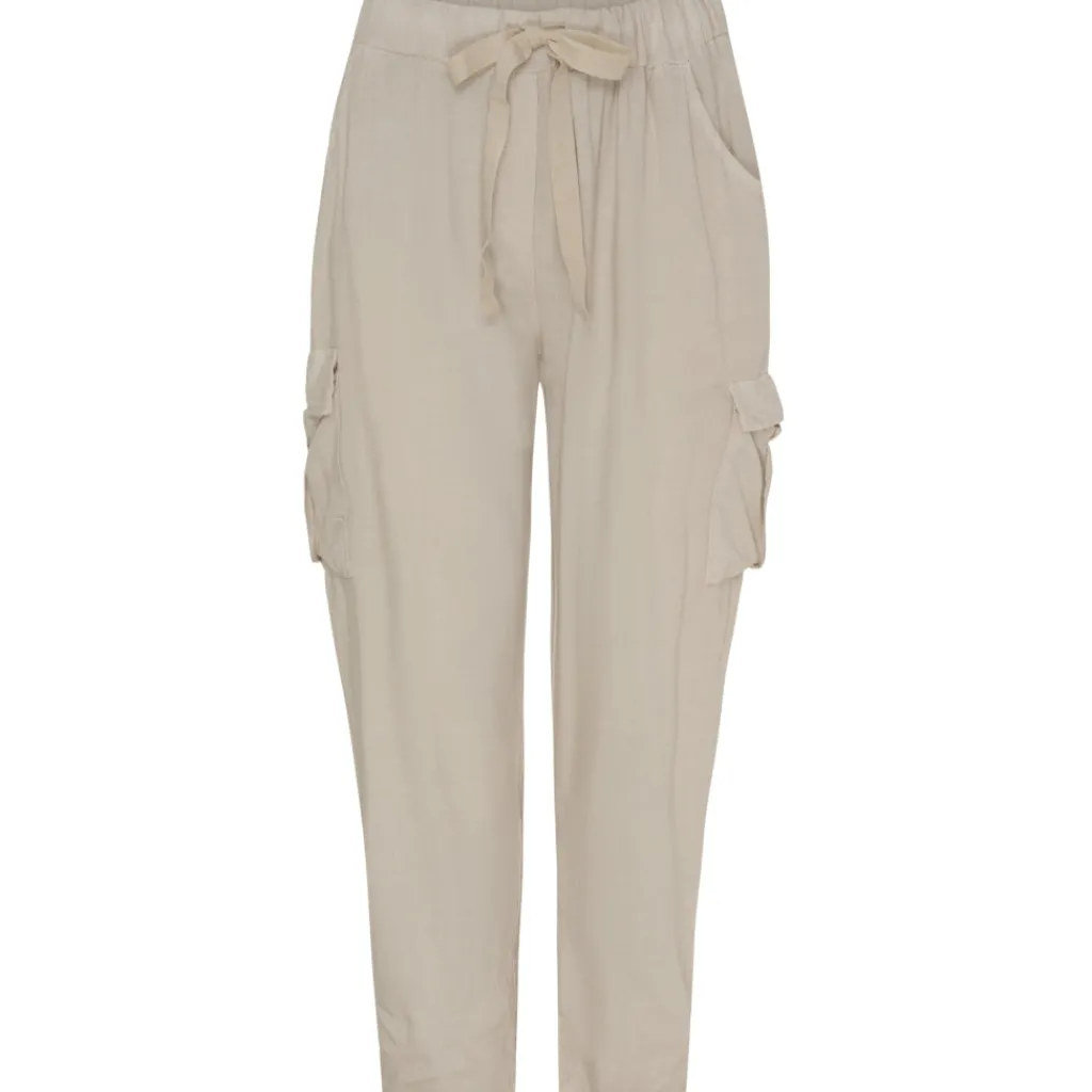 Skønne cargobukser i hørblanding med bindebånd i taljen.