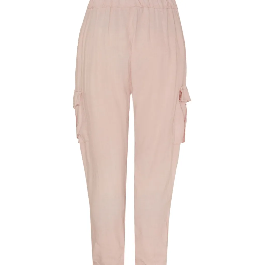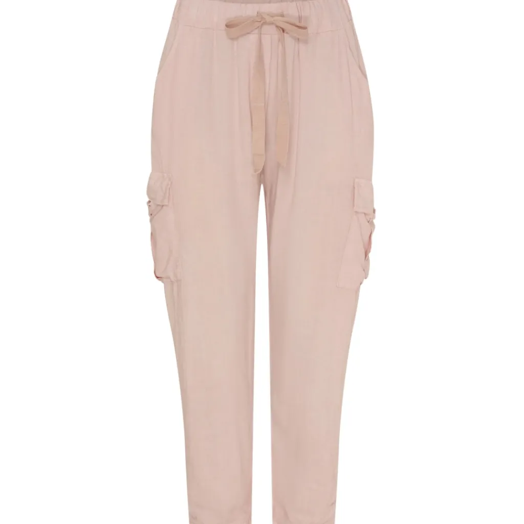 Skønne cargobukser i hørblanding med bindebånd i taljen.