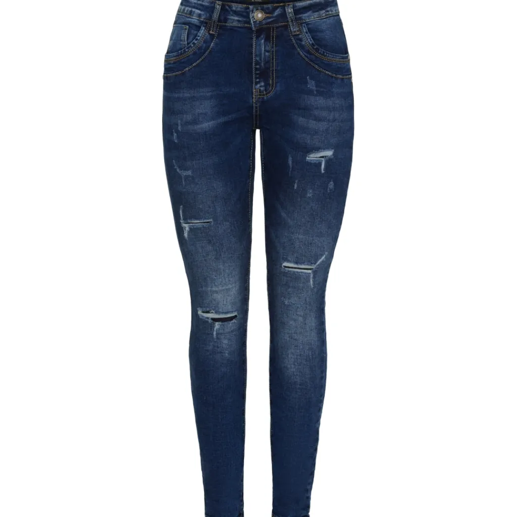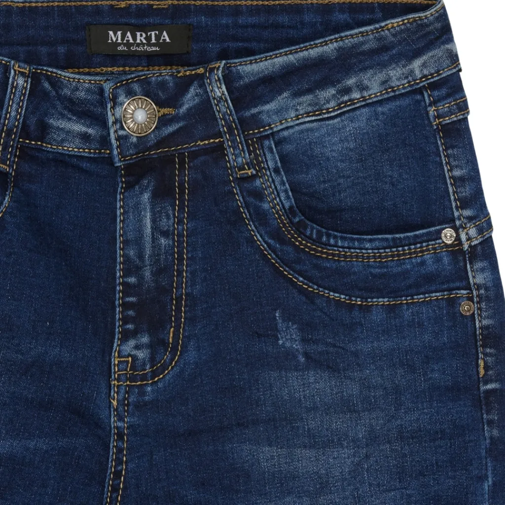 Seje jeans fra Marta med dekorativ knaplukning. Bukserne har slid og en vasket look på både forsiden og bagpå.