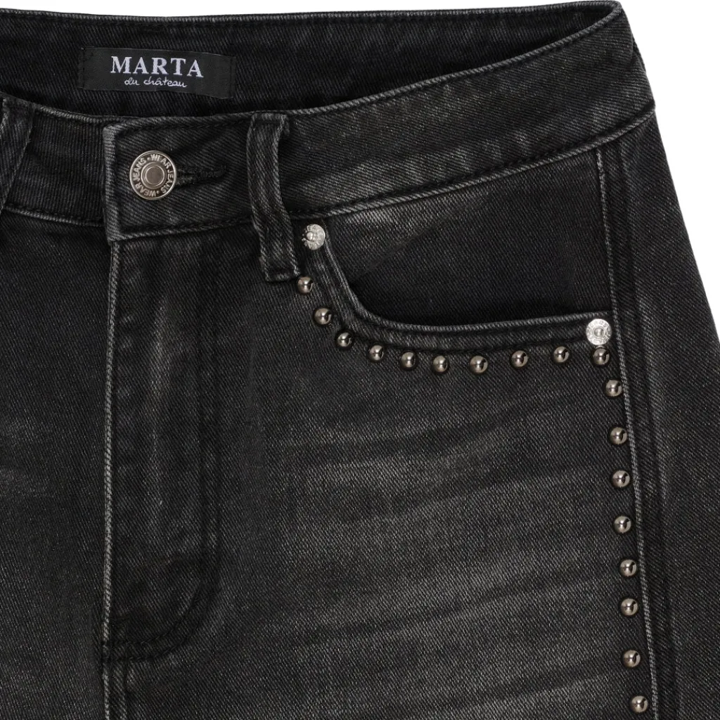 Cool baggy jeans fra Marta du Château med nitte-detaljer. Bukserne har knap- og lynlåslukning, samt lommer foran og bag. De kan bruges til ethvert outfit – både med en top og blazer, en strik eller skjorten, som matcher til.