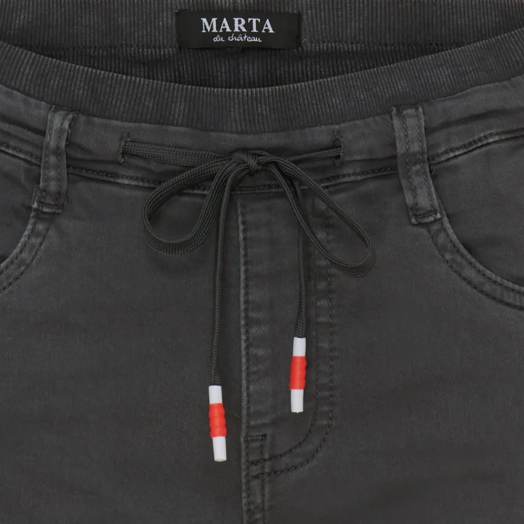 Klassiske slimfit jeans fra Marta du Château. Jeansen har lommer og bindebånd i taljen.
