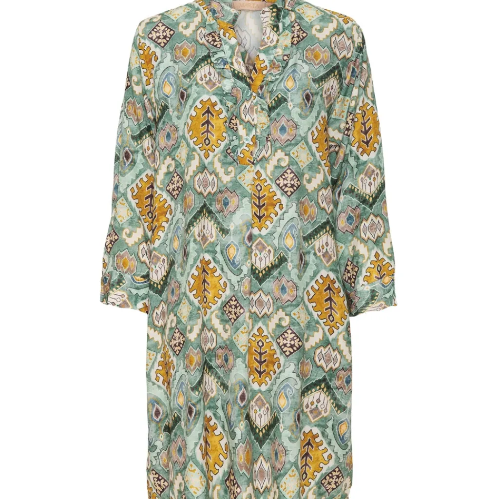 Flot kjole/tunika fra Marta med v-hals samt flæse ved ærmet. Perfekt at style med et par jeans samt støvler.