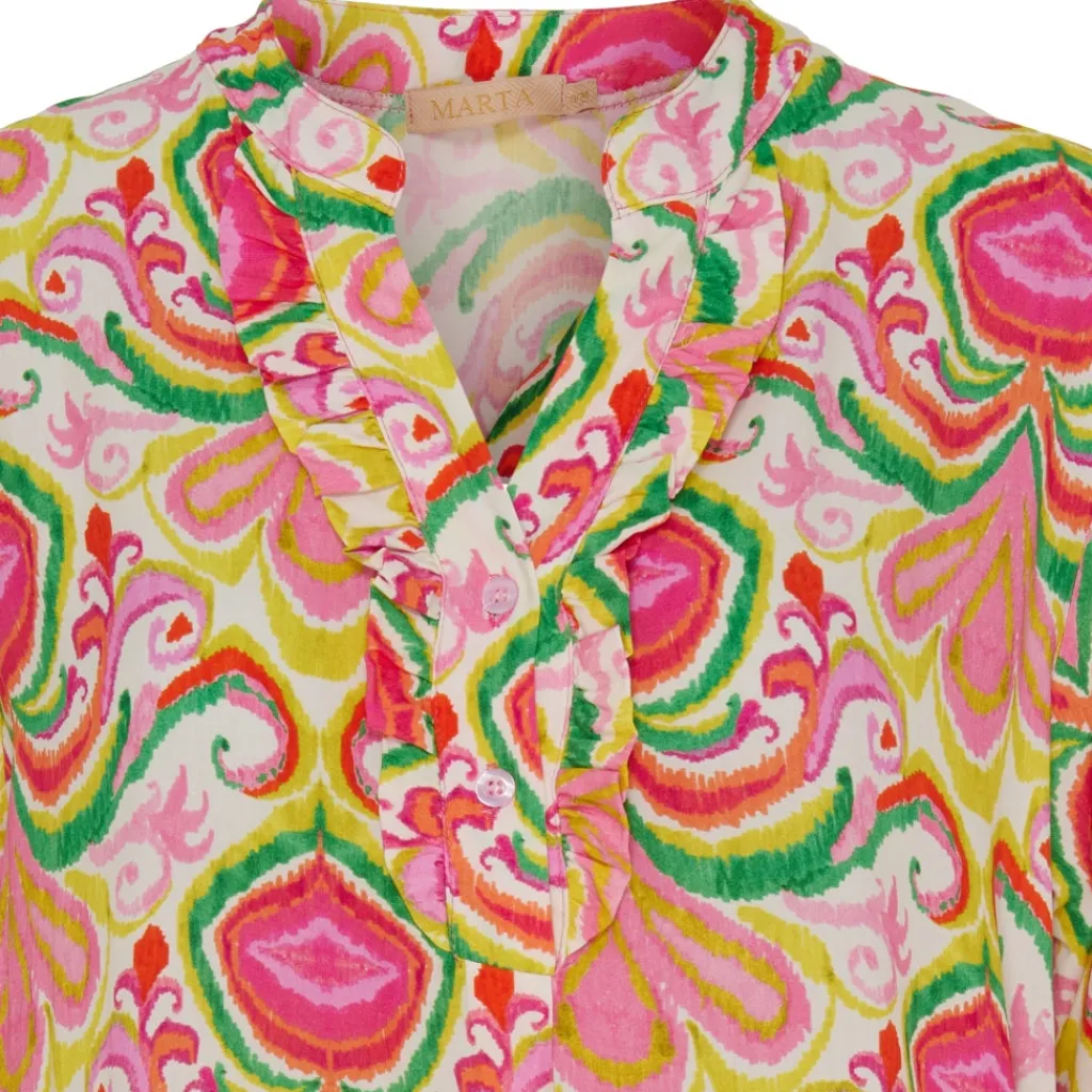 Flot kjole/tunika fra Marta med v-hals samt flæse ved ærmet. Perfekt at style med et par jeans samt støvler.