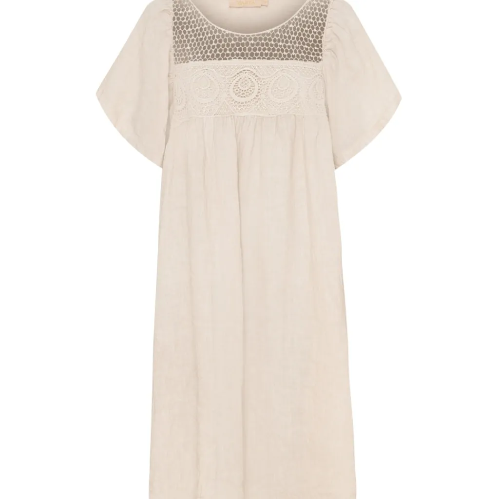 Smuk ensfarvet kjole fra Marta Du Cháteau med smukke blondedetaljer ved brystet.