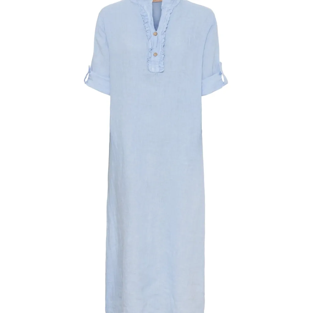 Smuk kjole med knapper og kalvekrøs. Kjolen passer perfekt till sommeren, med et par sandaler.