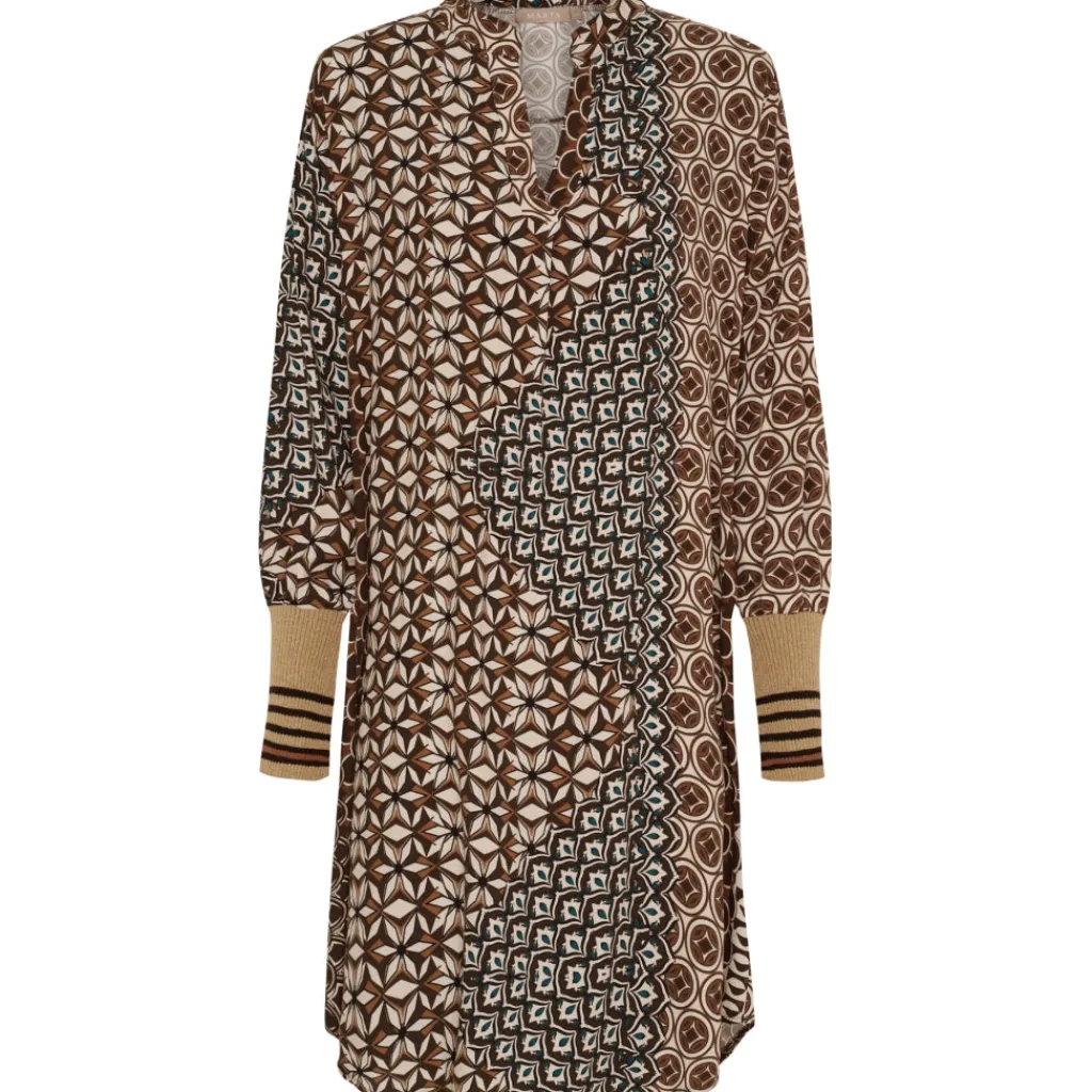 Super fin kjole fra Marta Du Château i et unikt print. Kjolen har V-udskæring med en lille krave og ribkant ved ærme. Style den med et par strømpebukser og sneakers eller en støvle for et finere look.