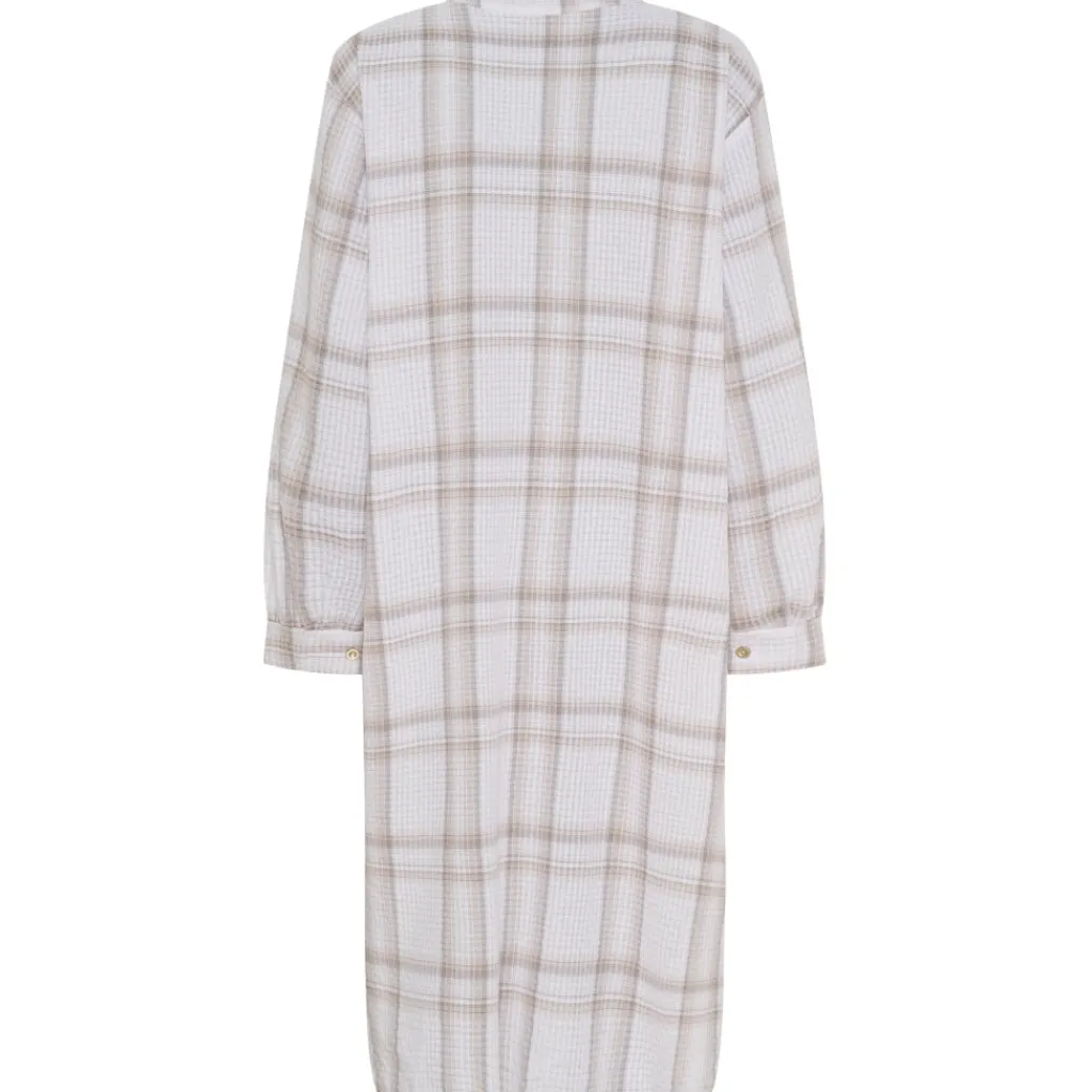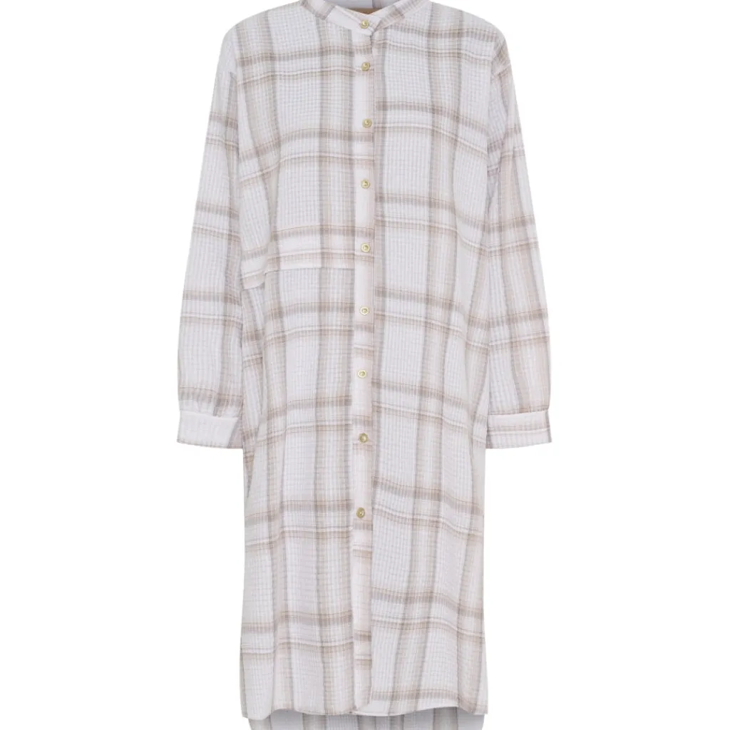 Fin kjole fra Marta Du Château som er en smule længere bagtil end foran. Kjolen er gennemknappet og har en krave, og kan bruges til hverdag med tights og sneakers for et fint look.