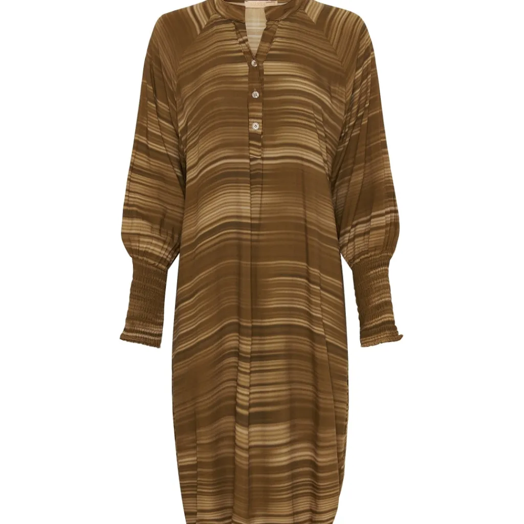 Kjole/tunika fra Marta Du Château med smock i ærmerne. Kjolen har et fint feminint print og kan både bruges til hverdag og finere brug. Til hverdag, style den med tights og sneakers. Til finere brug, style den med støvler eller slingback stiletter.