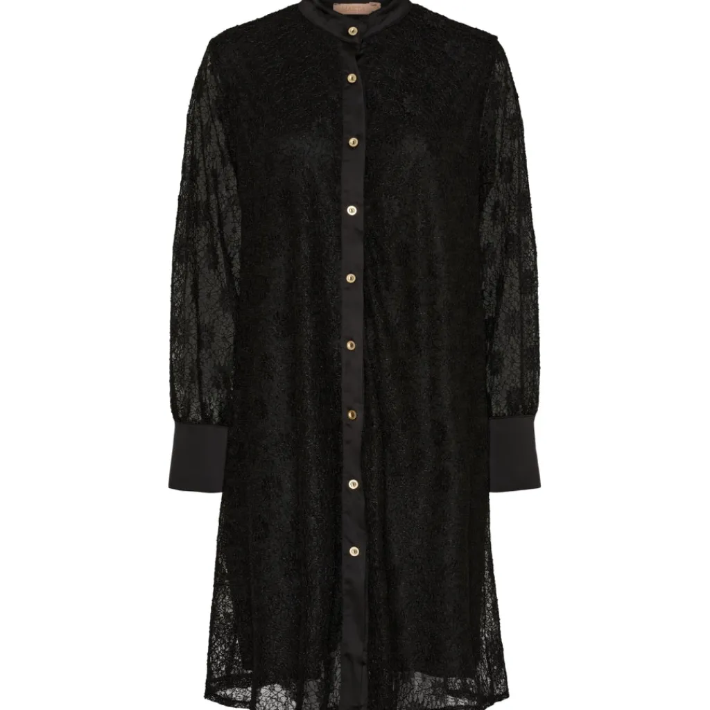 Fin blondekjole med guldknapper langs fronten. Kan både dresses op og ned efter anledning – tilføj et par sneakers og tights for et mere sofistikeret hverdagslook, og et par stiletter for et mere festligt look.