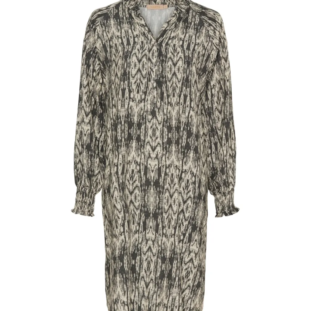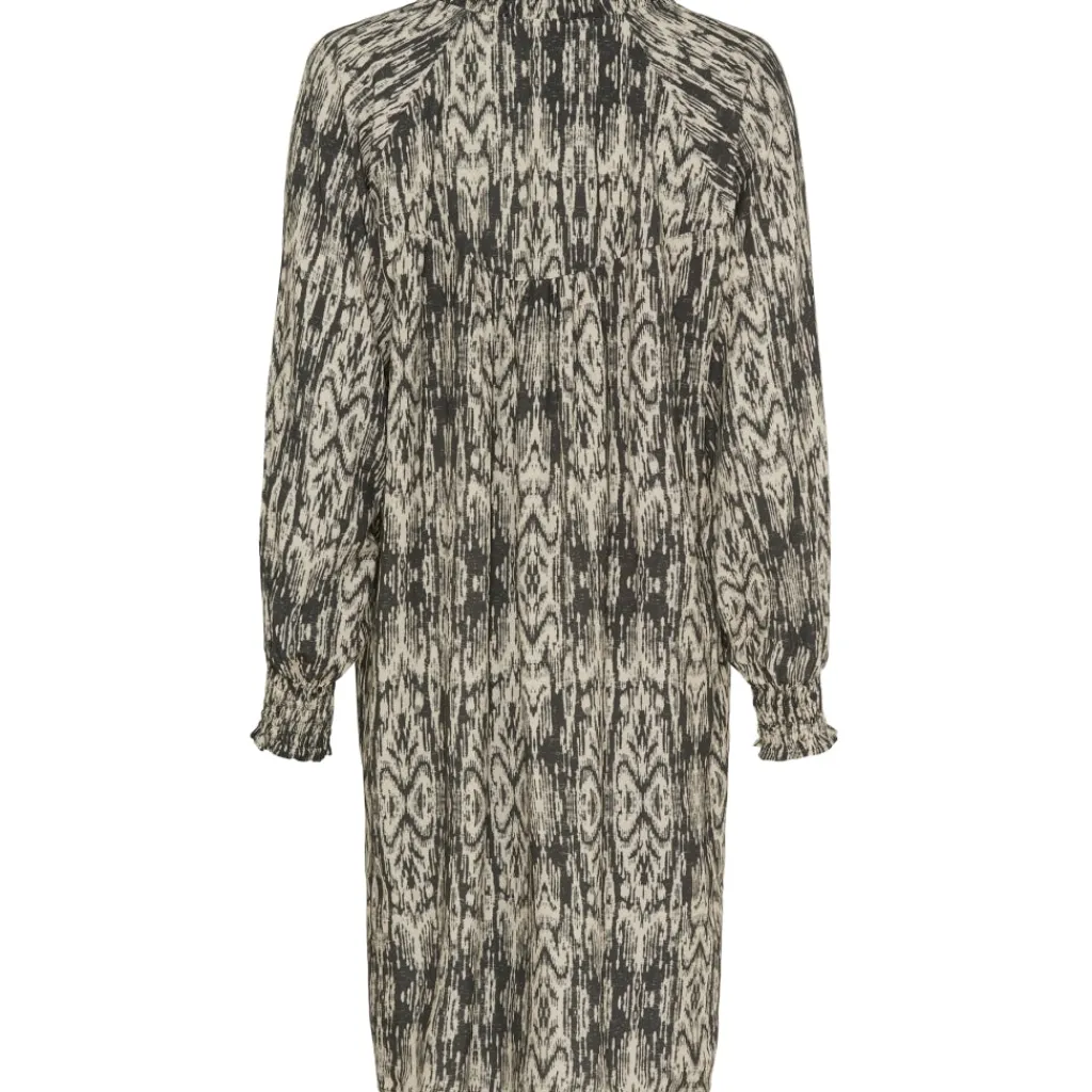 Smuk v-halset kjole fra Marta. Kjolen har sofistikerede knapper og smock ved ærmerne for en fin detalje. Den er super komfortabel og rar at have på.