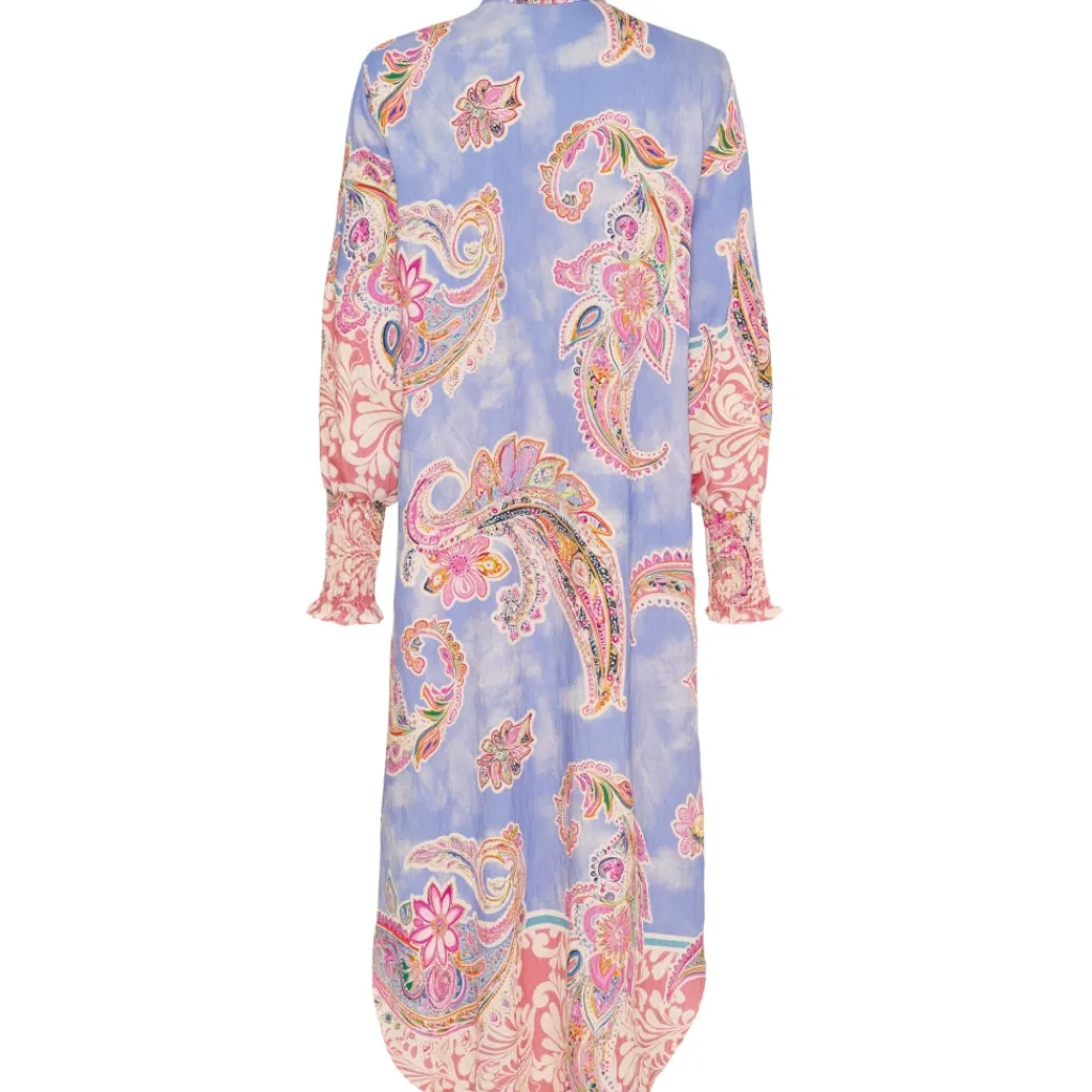 Smuk printet gennemknappet kjole fra Marta Du Château. Kjolen har smock ved ærmerne og er super feminin og elegant.