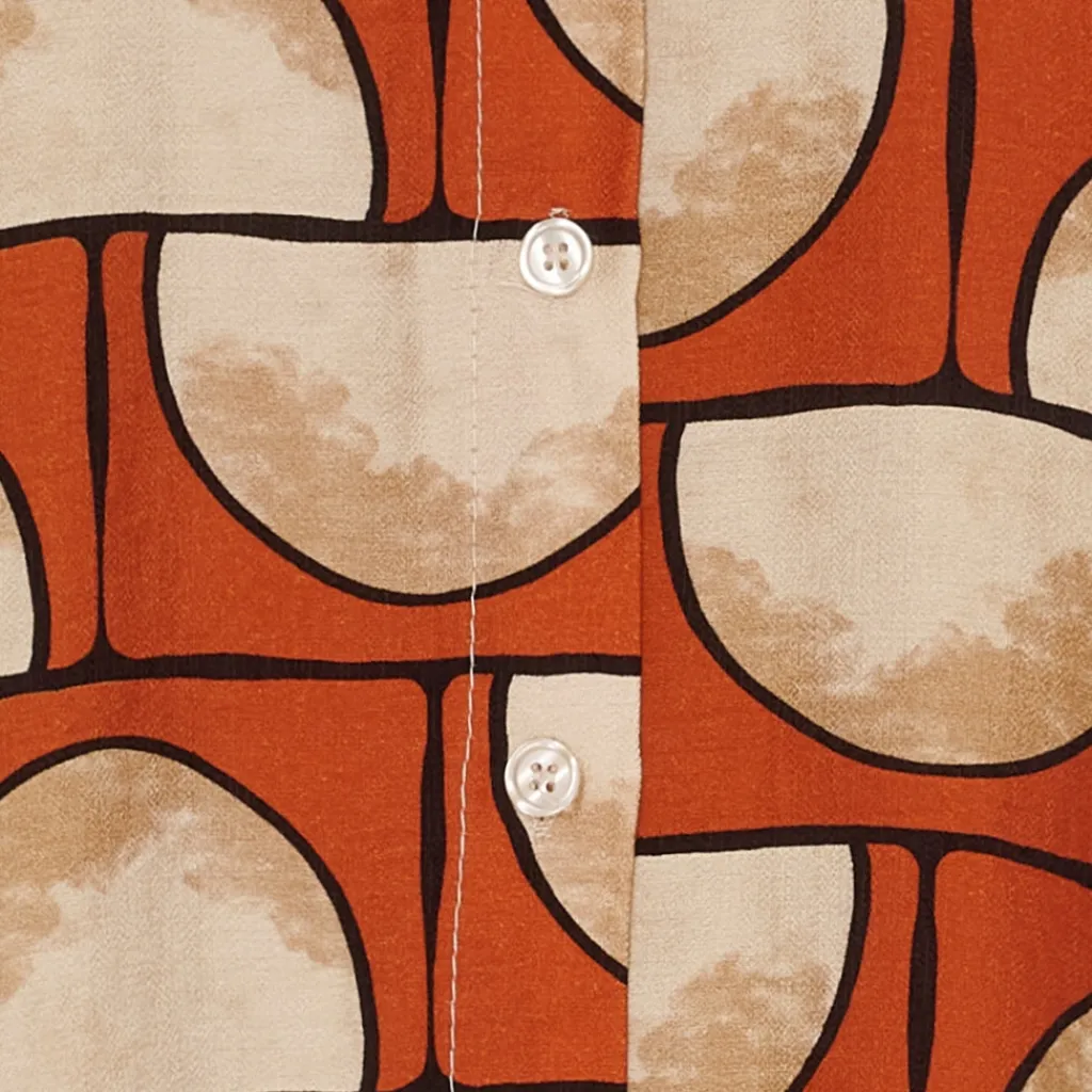 Smuk og elegant printet kjole fra Marta Du Château. Kjolen er gennemknappet, har krave og smock ved ærmer. Kan bruges til både hverdag og finere brug.