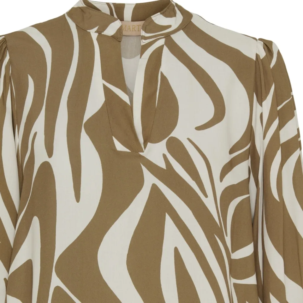 Smuk kjole med lille v-hals og elastik ved håndledet.